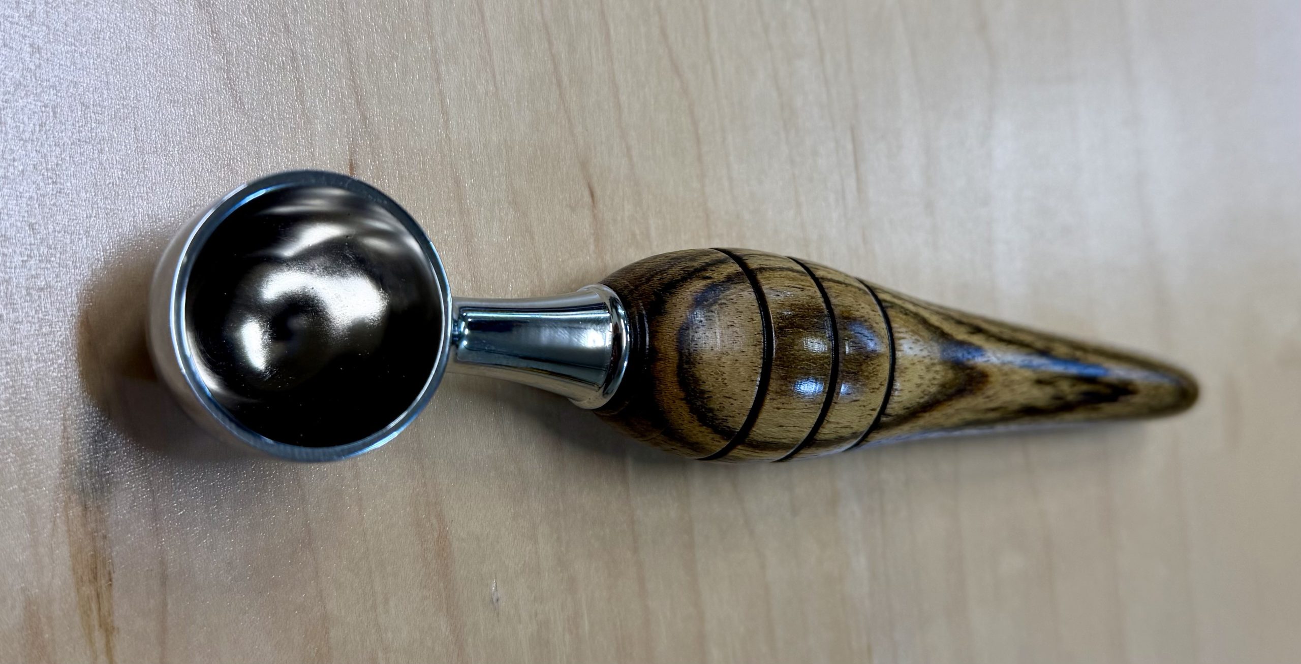 First time working with Bocote. Very easy to work with on the lathe making this coffee scoop for my pastor for Pastor Appreciation month.