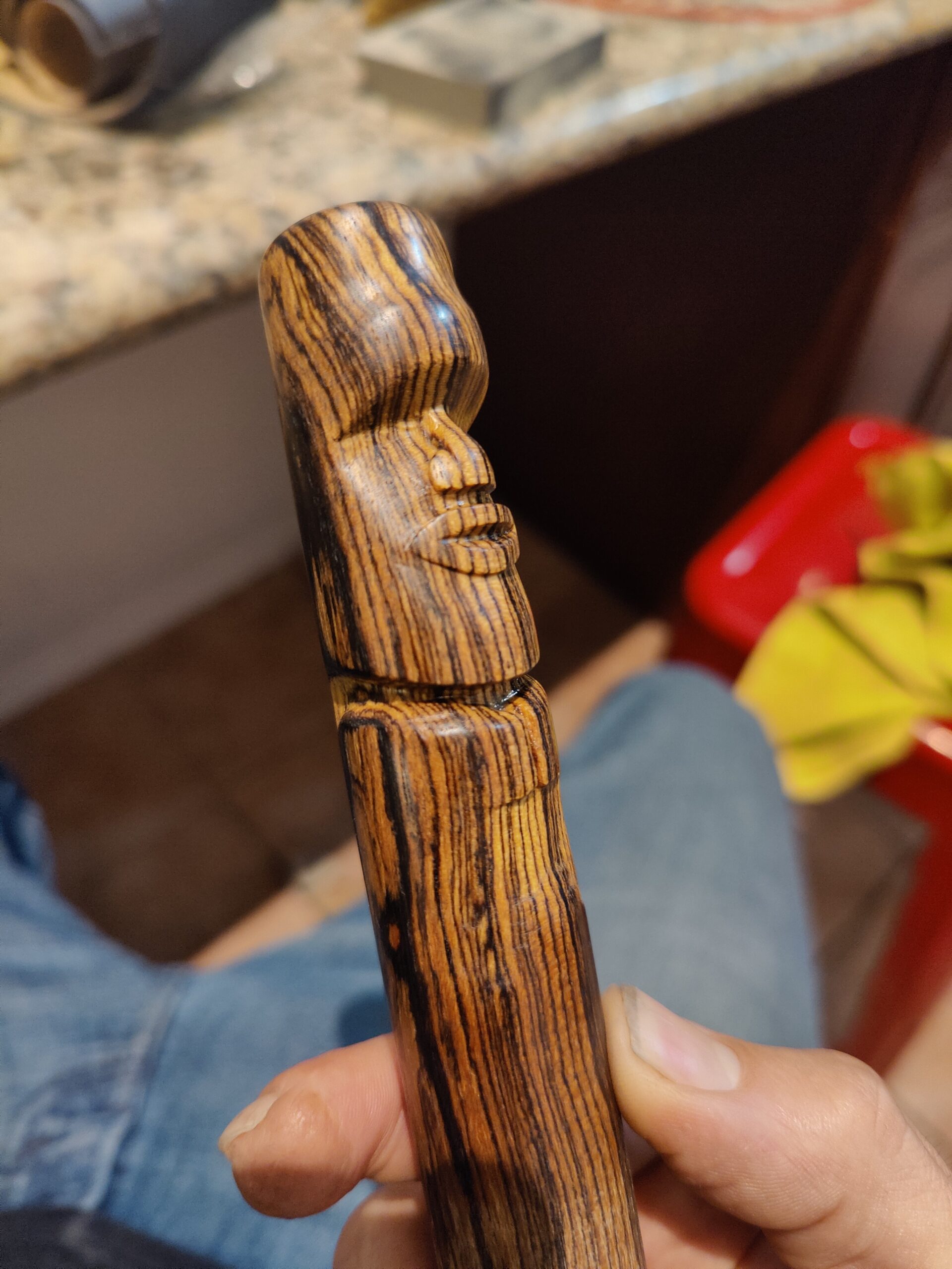 Carved this version of a Moai from a 1″ dowel.. the 1500 grit and coconut oil does wonders