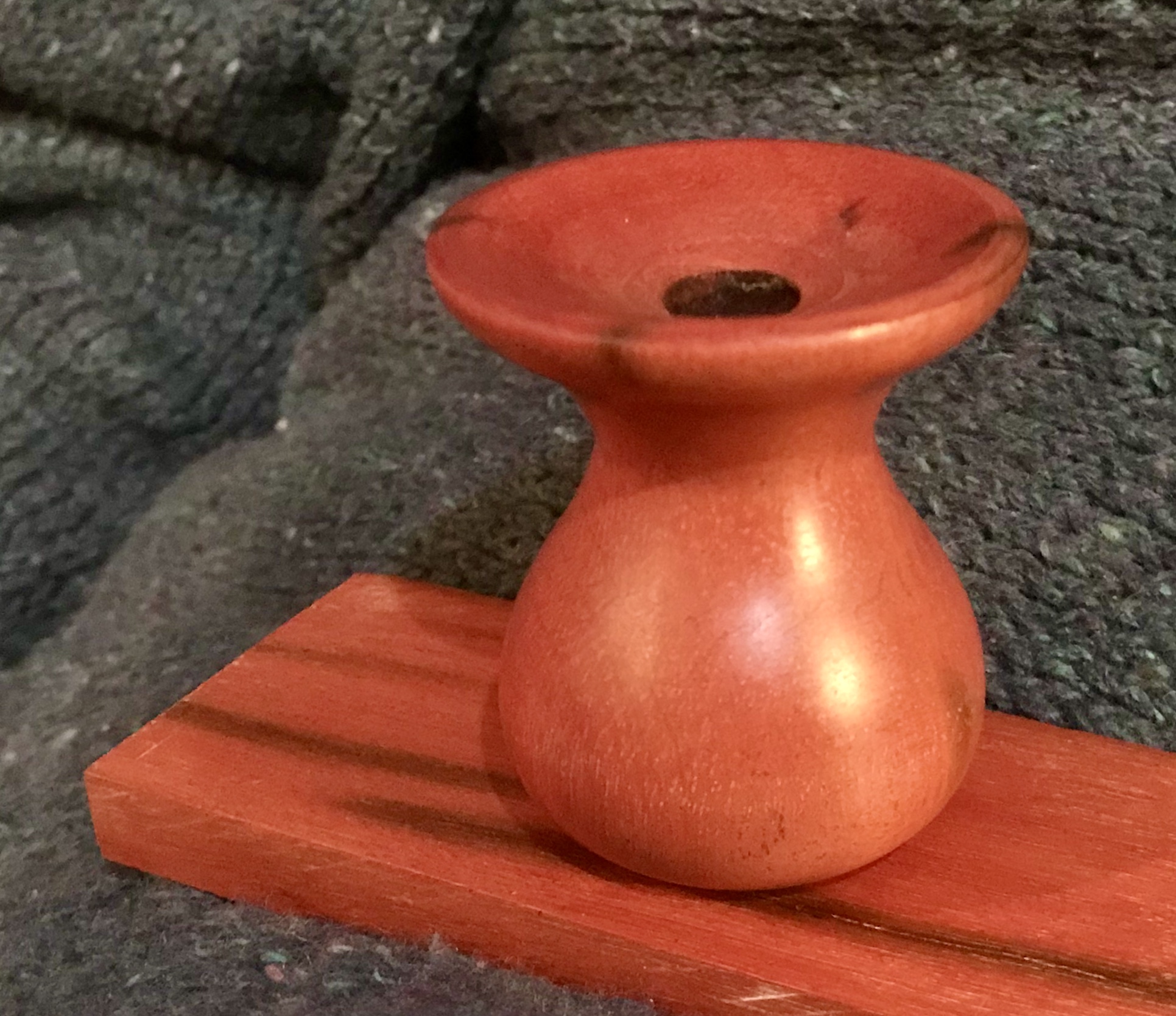 Picked up a piece of wood that was being used for deck construction in Brazil. I was told it is Massaranduba. It is wonderful to work with on the lathe. The finish is simply friction polish for a few seconds on the lathe