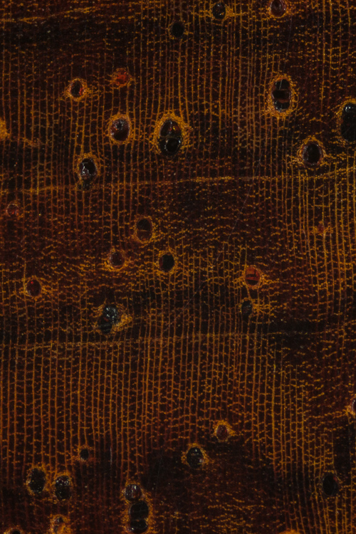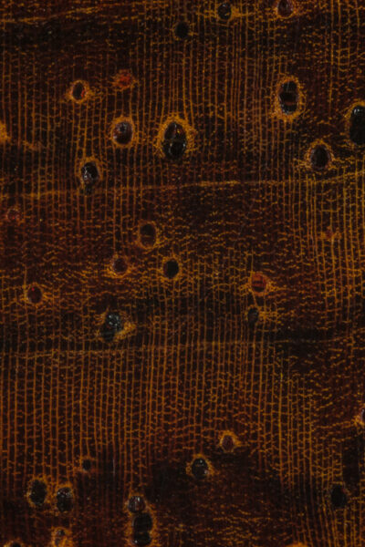 Lookalikes/Substitutes: Pau ferro (Machaerium spp.) has a very similar overall appearance that can also be confused with (or substituted for) cocobolo. Cocobolo can be separated from lookalikes based on it’s large and very infrequent pores, averaging only about 3-6 pores per mm2.