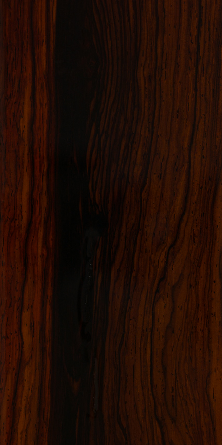 Color/Appearance: Cocobolo can be seen in a kaleidoscope of different colors, ranging from yellow, orange, red, and shades of brown with streaks of black or purple. Sapwood is typically a very pale yellow. Colors are lighter when freshly sanded/cut, and darken with age; for more information, see the article on preventing color changes in exotic woods.
