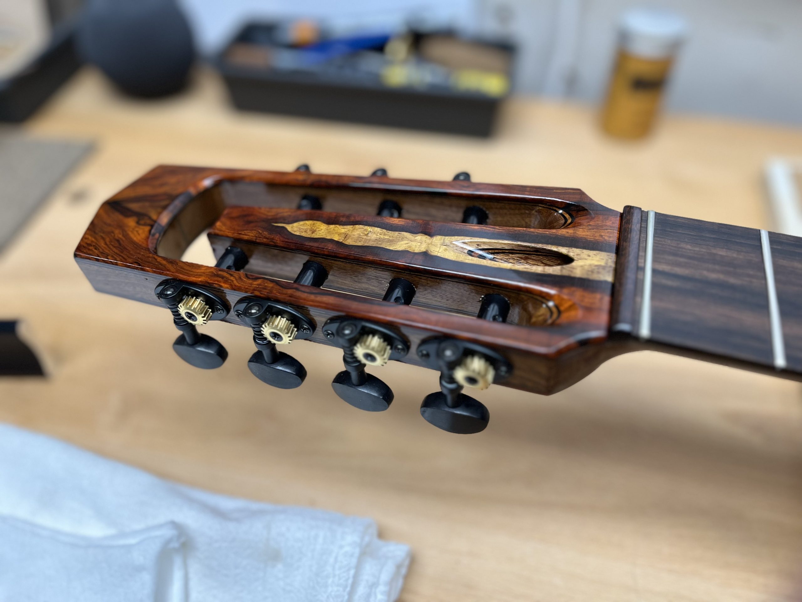 I really like the bookmatched sapwood on the peghead. Very nice attention to detail.