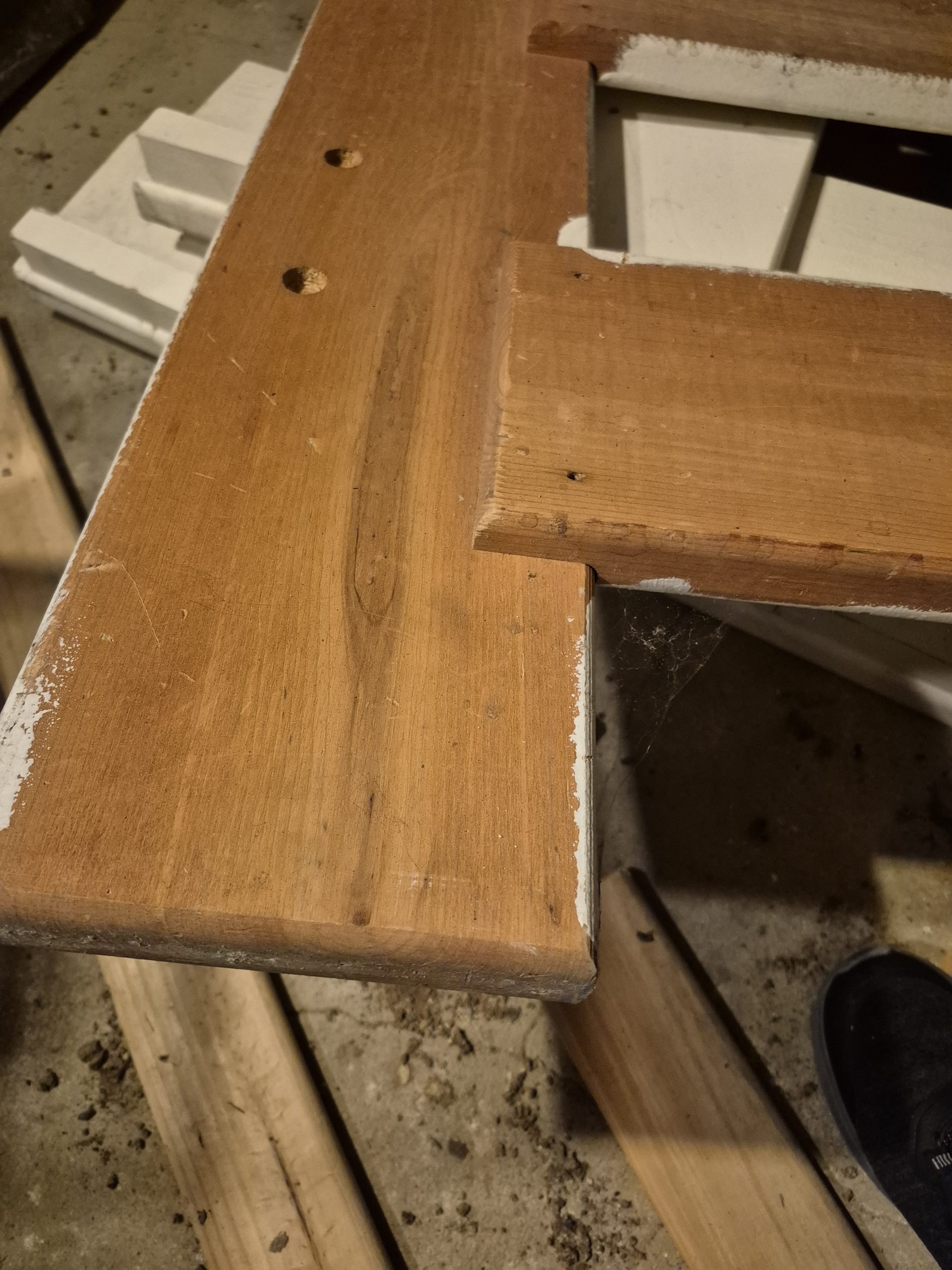 I’ve taken pictures in different lighting, both from the inside and outside. The door is stained, but the photos showing the side and top edges reveal freshly cut wood since I had to trim the door to fit. I suspect the vertical and horizontal wood might be different species, but I could be wrong.
