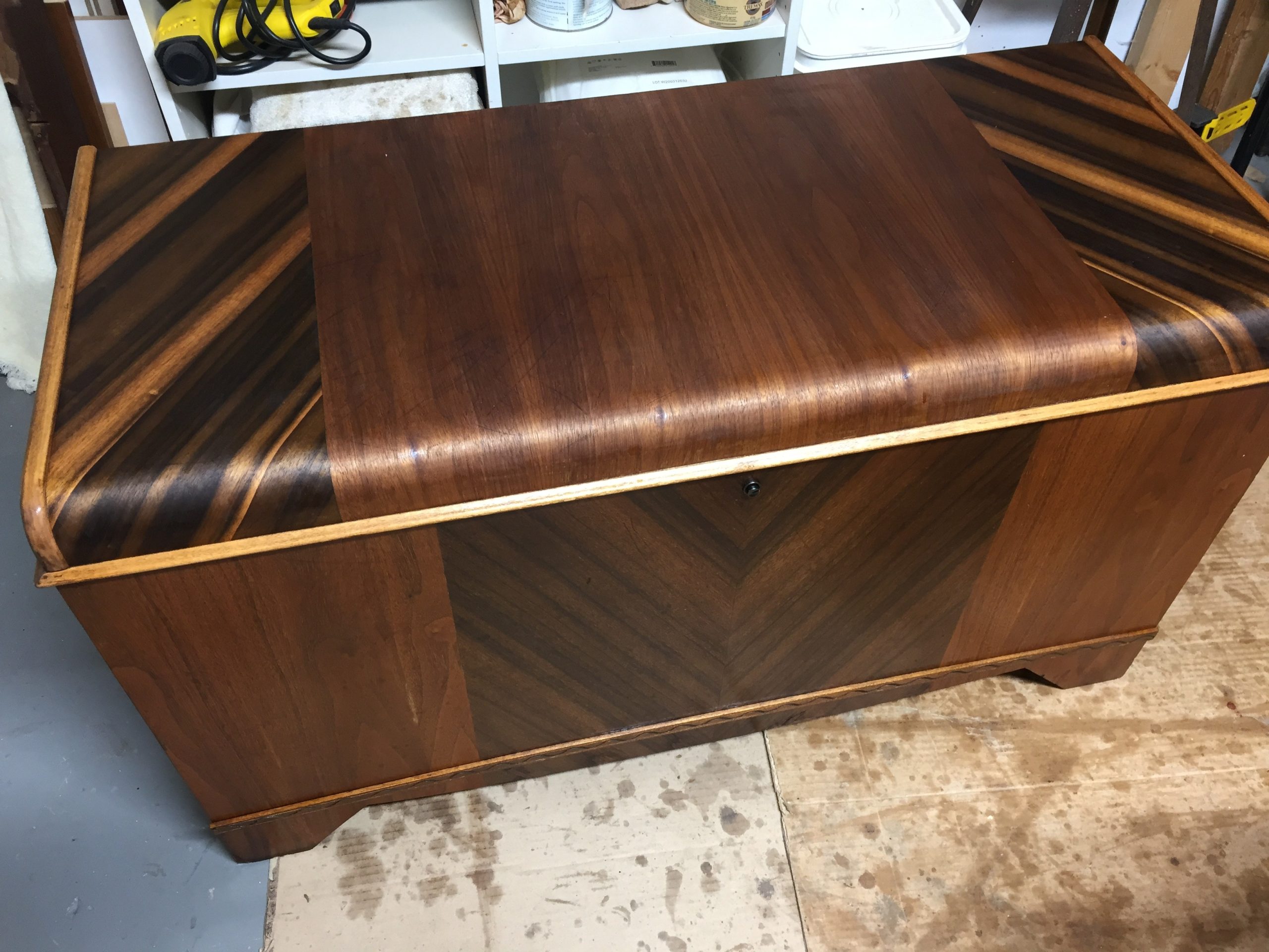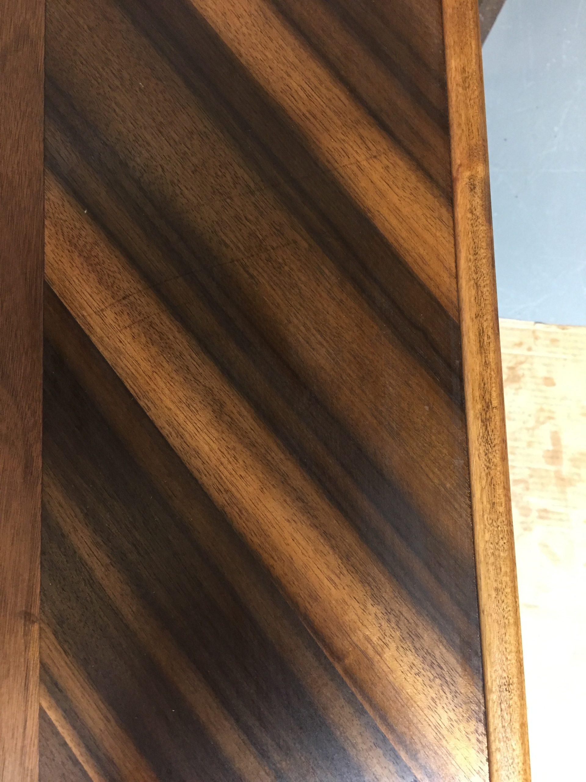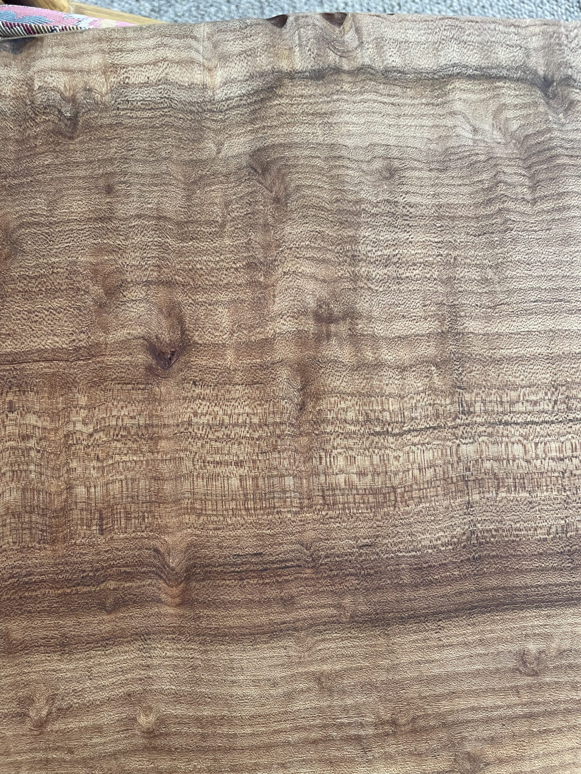 Very straight grain, almost black/ lit ribbon veneer on chest
