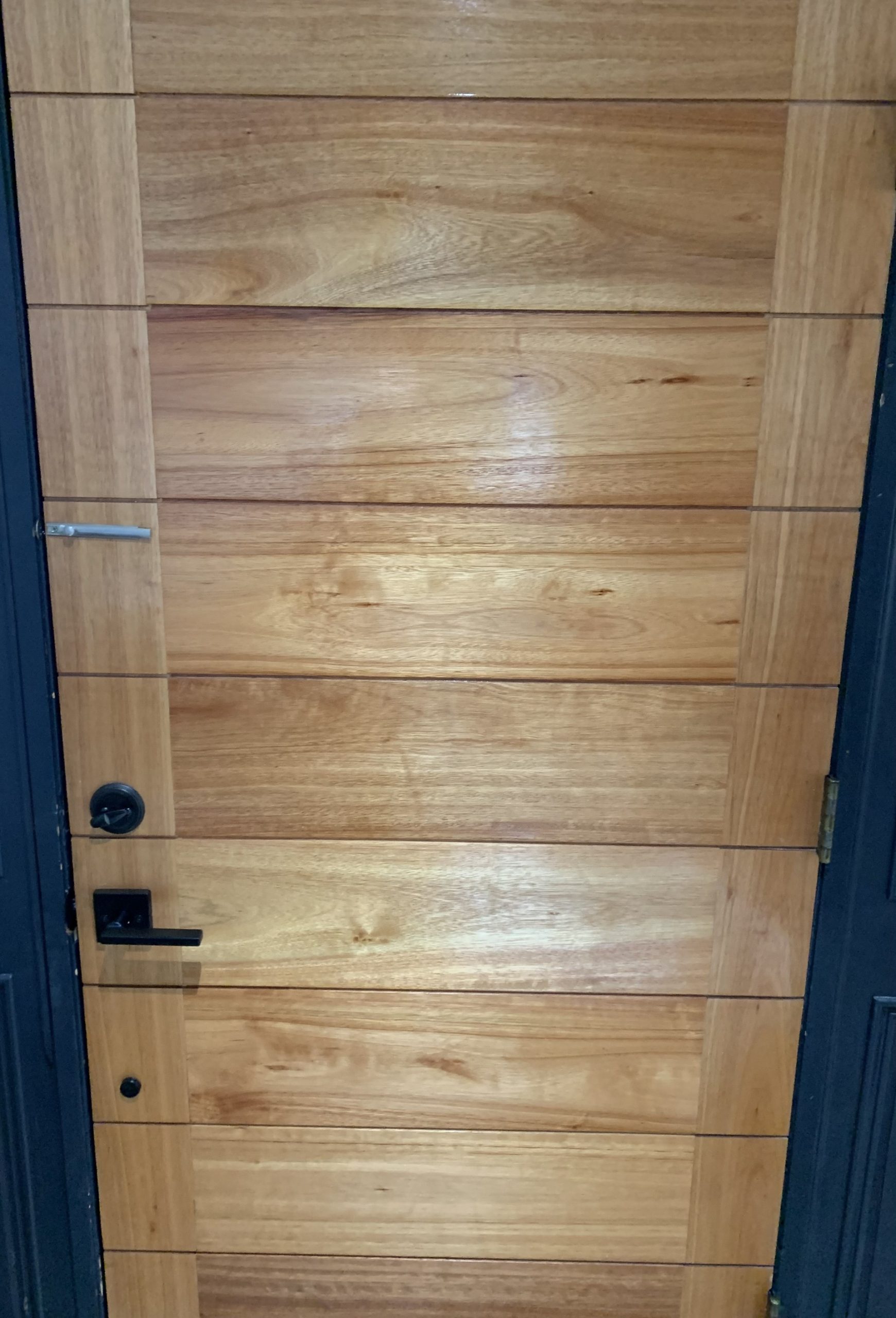 I recently bought a used front door to install, and I’m trying to match the wood species for the sidelight panels. Any ideas on what it might be?