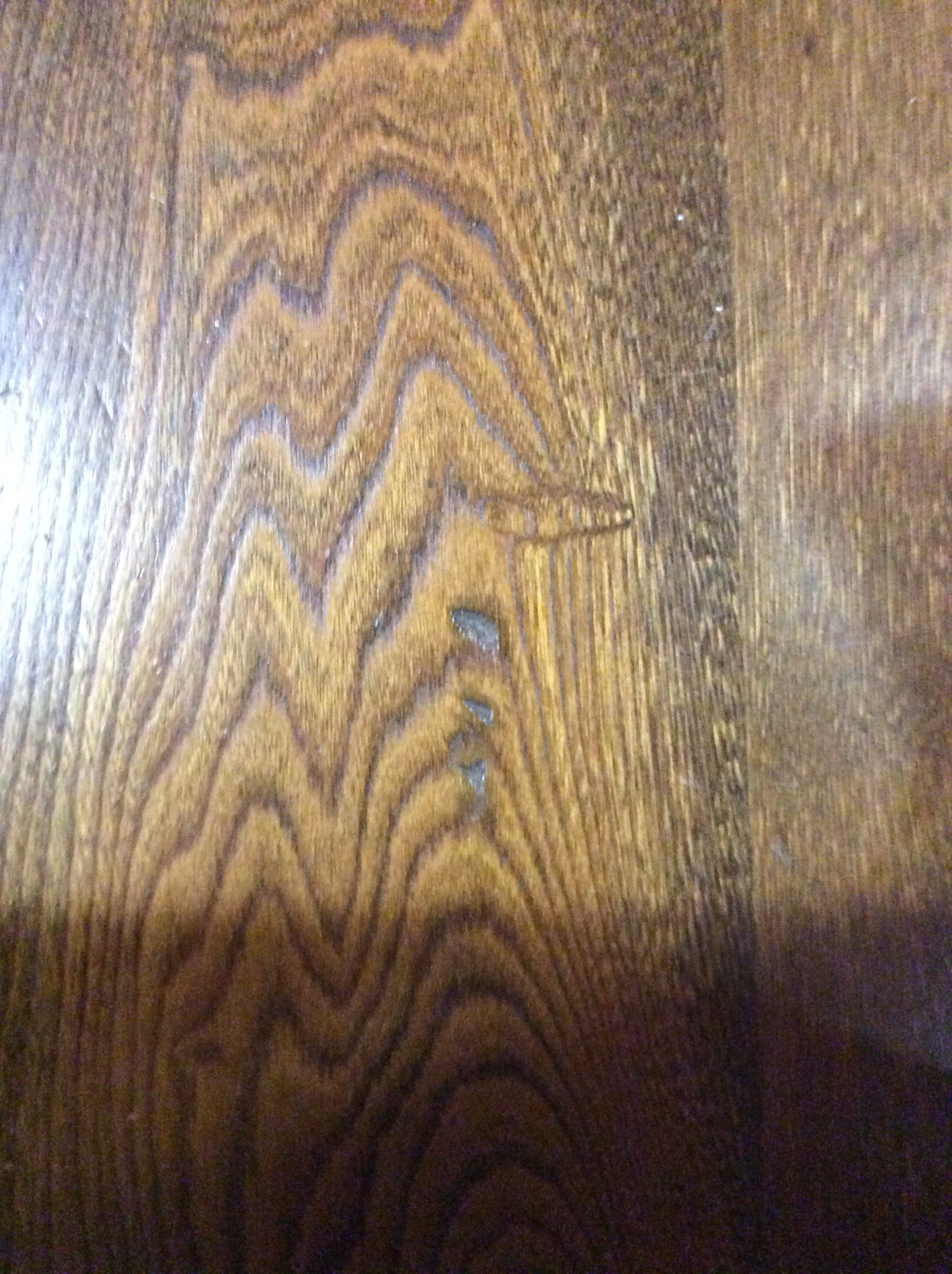 Obviously softwoods will tend to be softer than hardwoods, but try to get a sense of how it compares to other known woods. Density and hardness are closely related, so if the wood is heavy, it will most likely be hard too. If the wood is a part of a finished item that you can’t adequately weigh, you might be able to test the hardness by gouging it in an inconspicuous area. Also, if it is used in a piece of furniture, such as a tabletop, a general idea of its hardness can be assessed by the number and depth of the gouges/dings in the piece given its age and use. A tabletop made of pine will have much deeper dents than a tabletop made of Oak. Additionally, you can always try the “fingernail test” as a rough hardness indicator: find a crisp edge of the wood, and with your fingernail try to push in as hard as you can and see if you’re able to make a dent in the wood.