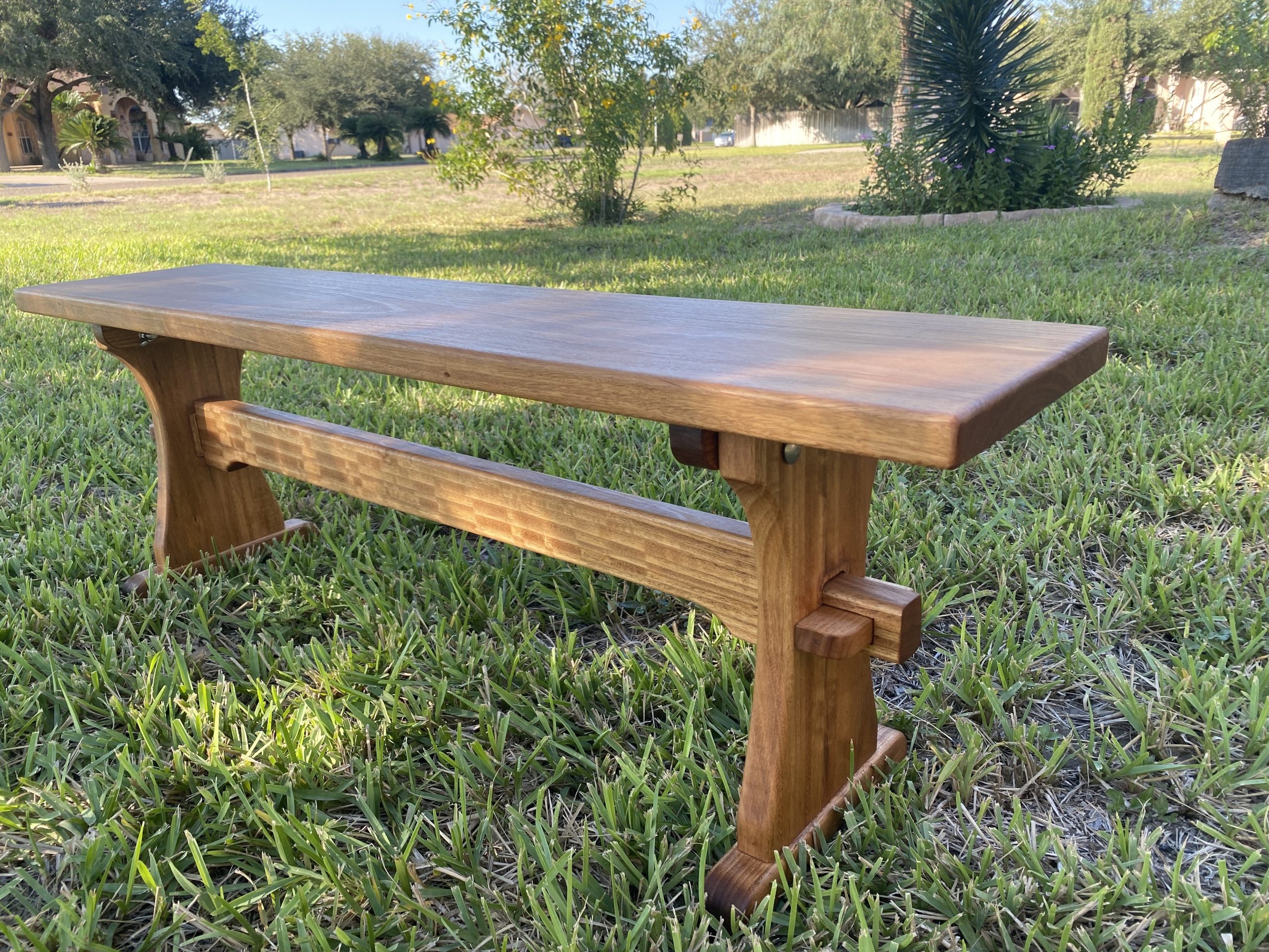 I brought some blue gum back to the US from Chile 31 years ago. It had warped during the drying so I had to level it out but after 31 years of air drying it is dry. I made this bench with it and it is really solid and heavy. Pure tung oil for finish.
