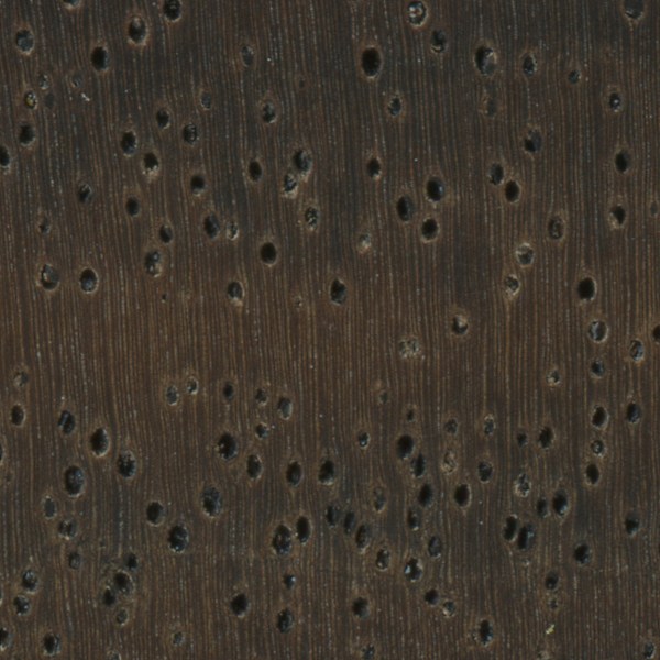 Endgrain: Diffuse-porous; sometimes exclusively solitary; large pores sometimes arranged in radial/diagonal patterns, very few; heartwood mineral/gum deposits common; parenchyma vasicentric and lozenge; narrow rays, spacing fairly close to close.