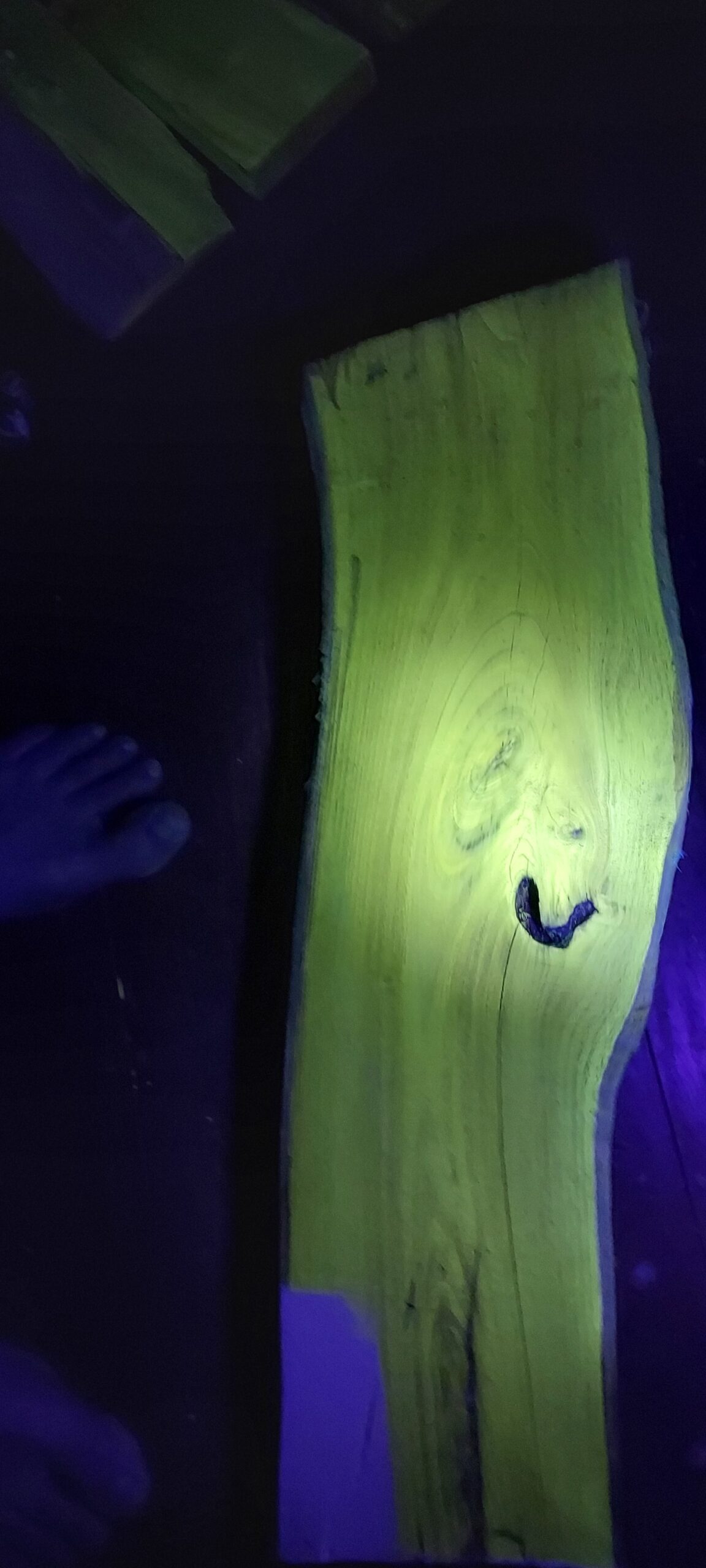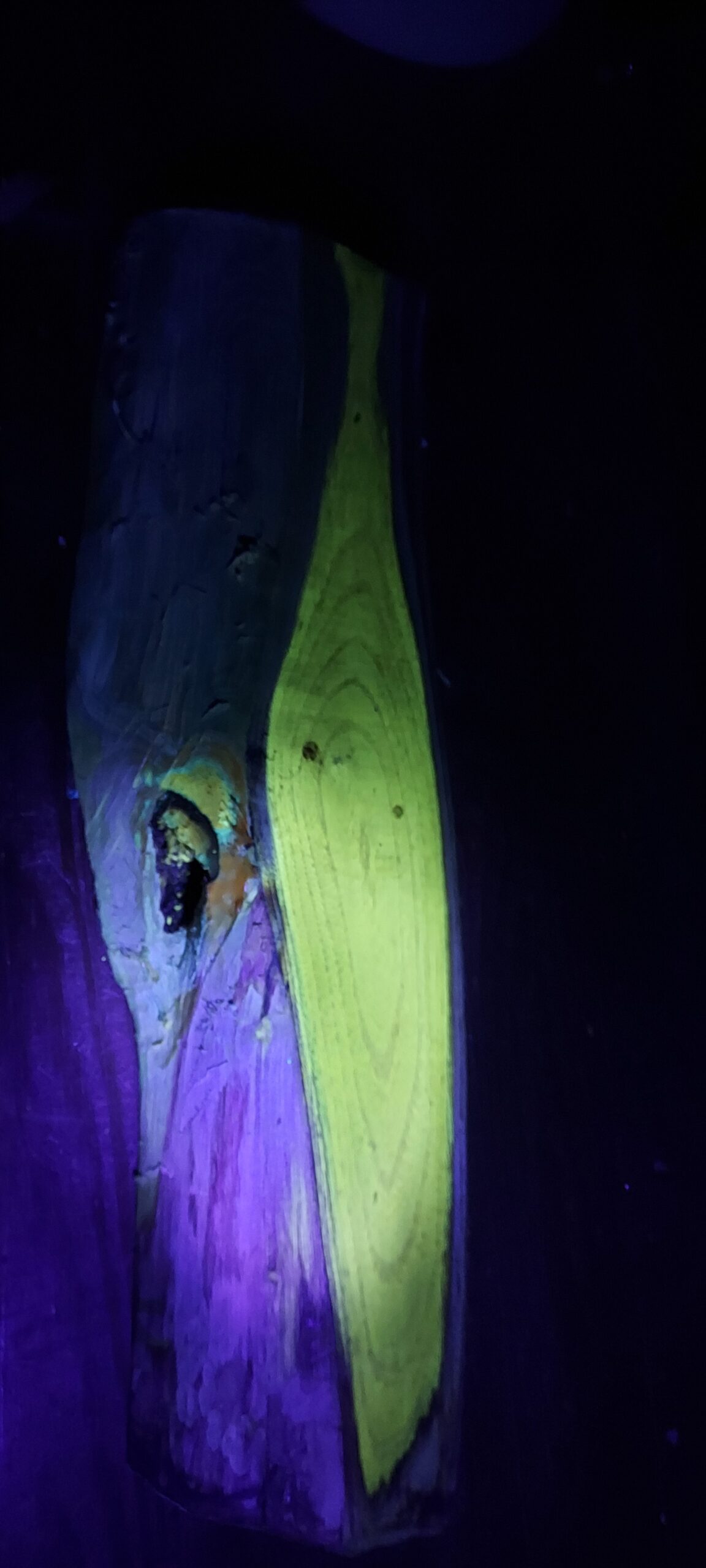 I cut the tree down like 2 years ago and kept it because the wood looked kind of yellowish and then didn’t find out until just about a month ago that it fluoresced like this