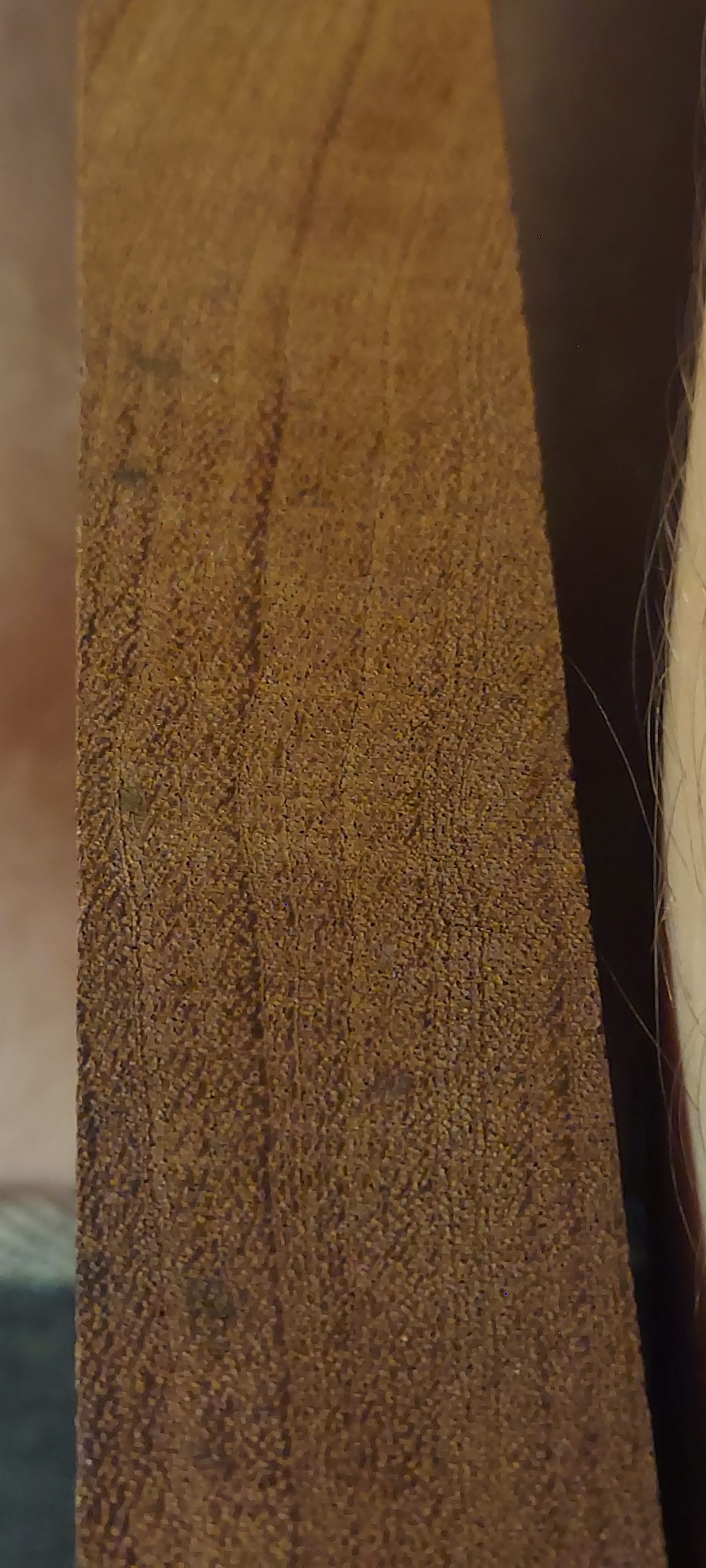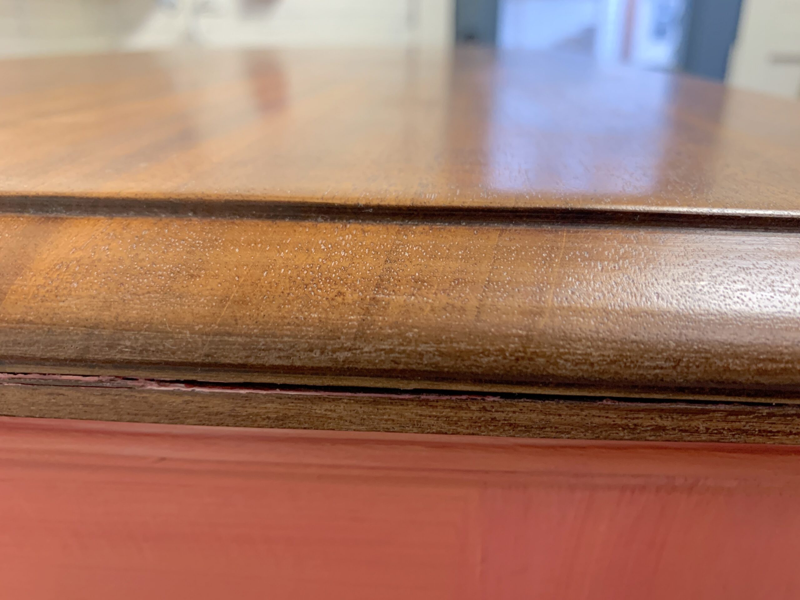 Thank you for your response! I added some more photos and I can’t seem to get clear magnified pics but I added them anyway. Fyi this is a table purchased in Ontario Canada. The pic of the drawer is the original colour the others I sanded a little by hand. Not sure if these pics will help.
