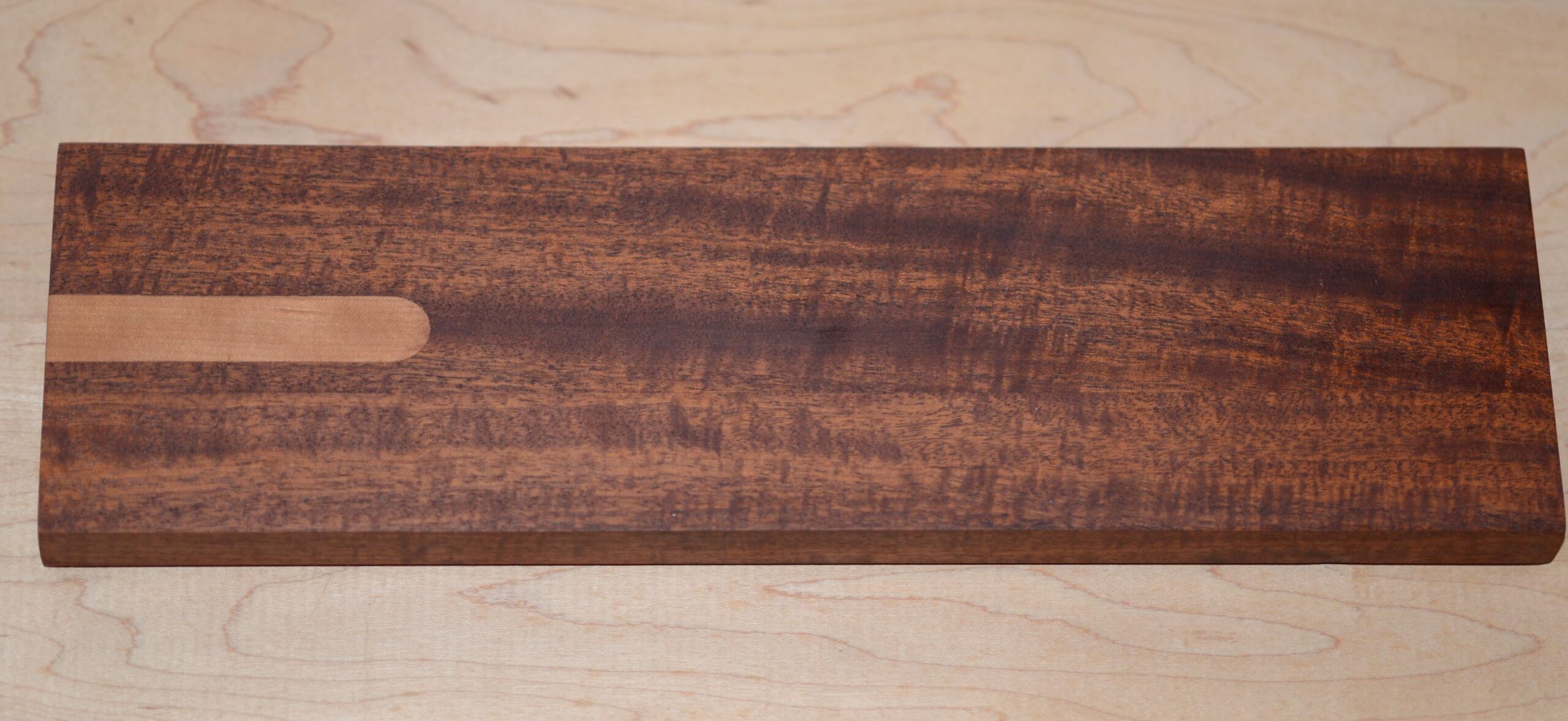 One final picture. This is the backside of a cribbage board I made from this wood. For color reference, it has a cherry slide and is sitting on a piece of maple. The cherry and the board have had a clear wipe on poly applied as a finish.