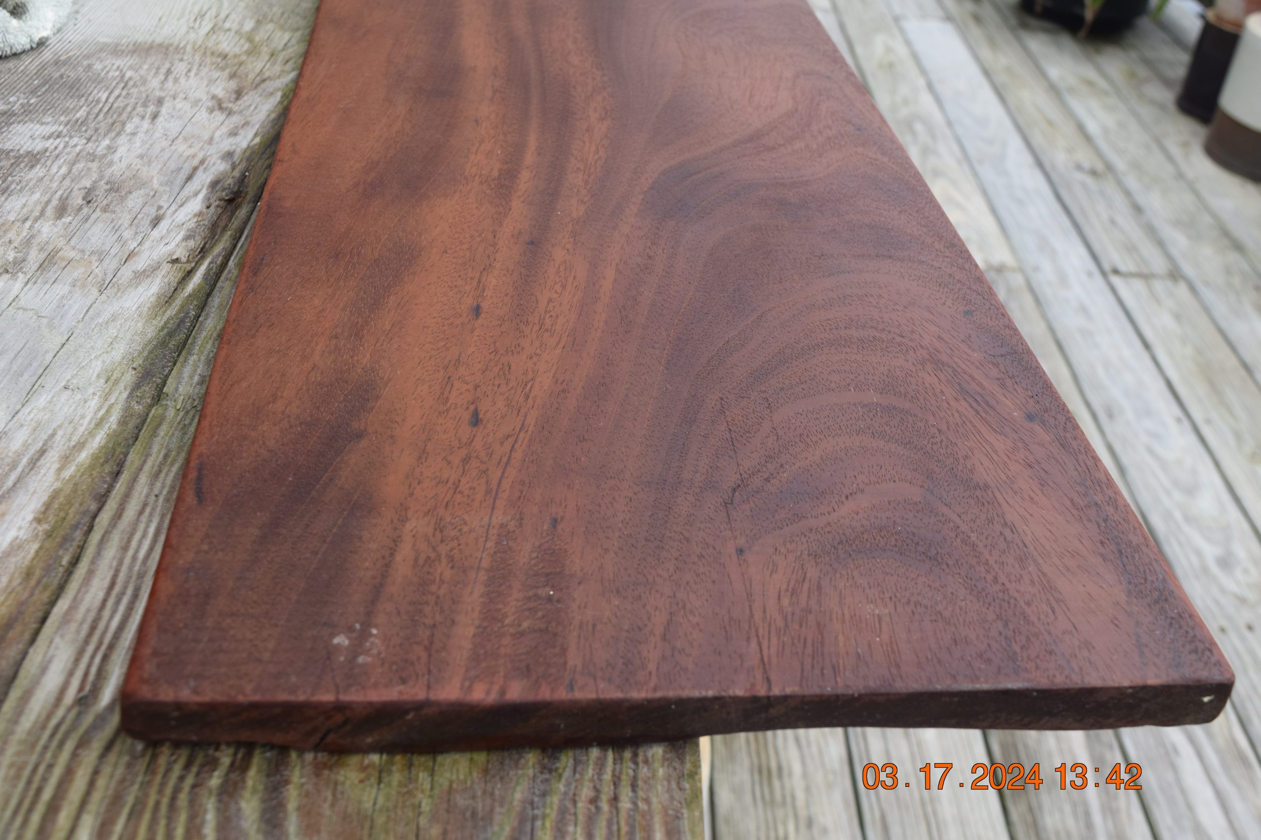 Hi, here are a couple of photos of what I think is Honduran mahogany. Would you agree? The board is 146″ long and 34″ wide. It was probably milled about 40 years ago, perhaps even earlier. It came for a lumber yard in Pennsylvania which closed for business in 1994 and auctioned all of its lumber. The photos show the board right after it was hand-planed. The ends of the board are painted with red paint and a 1/8″ thick strip had been stapled to prevent splitting. Well, the board split anyway. Boards of this size (and age) are probably… Read more »