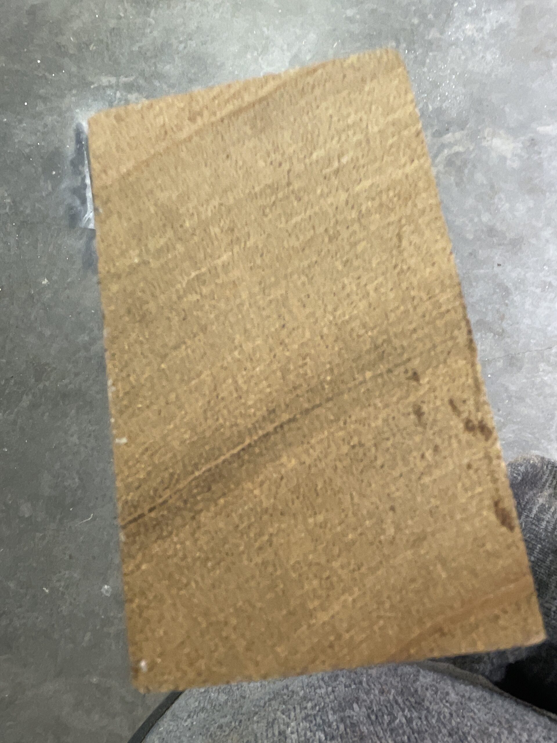 I’m told this was part of a butcher block counter top. Fairly heavy, definitely hardwood. The fresh cut endgrain smells like vinegar or acidic. Thank you.