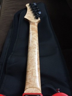 Birdseye maple guitar neck finished with ZPoxy and EnduroVar. Cutting tools chipped and tore this wood, but rasps, scrapers and abrasives worked great. Steve Wall Lumber in Mayodan, NC had a 7 bf plank for $10/bf. Can’t wait to make more guitar parts with this beautiful wood.