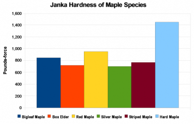 Also called rock maple, its wood may be fairly considered as the king of the Acer genus. Its wood is stronger, stiffer, harder, and denser than all of the other species of maple commercially available in lumber form. For more information, please see the article on the Differences Between Hard Maple and Soft Maple.