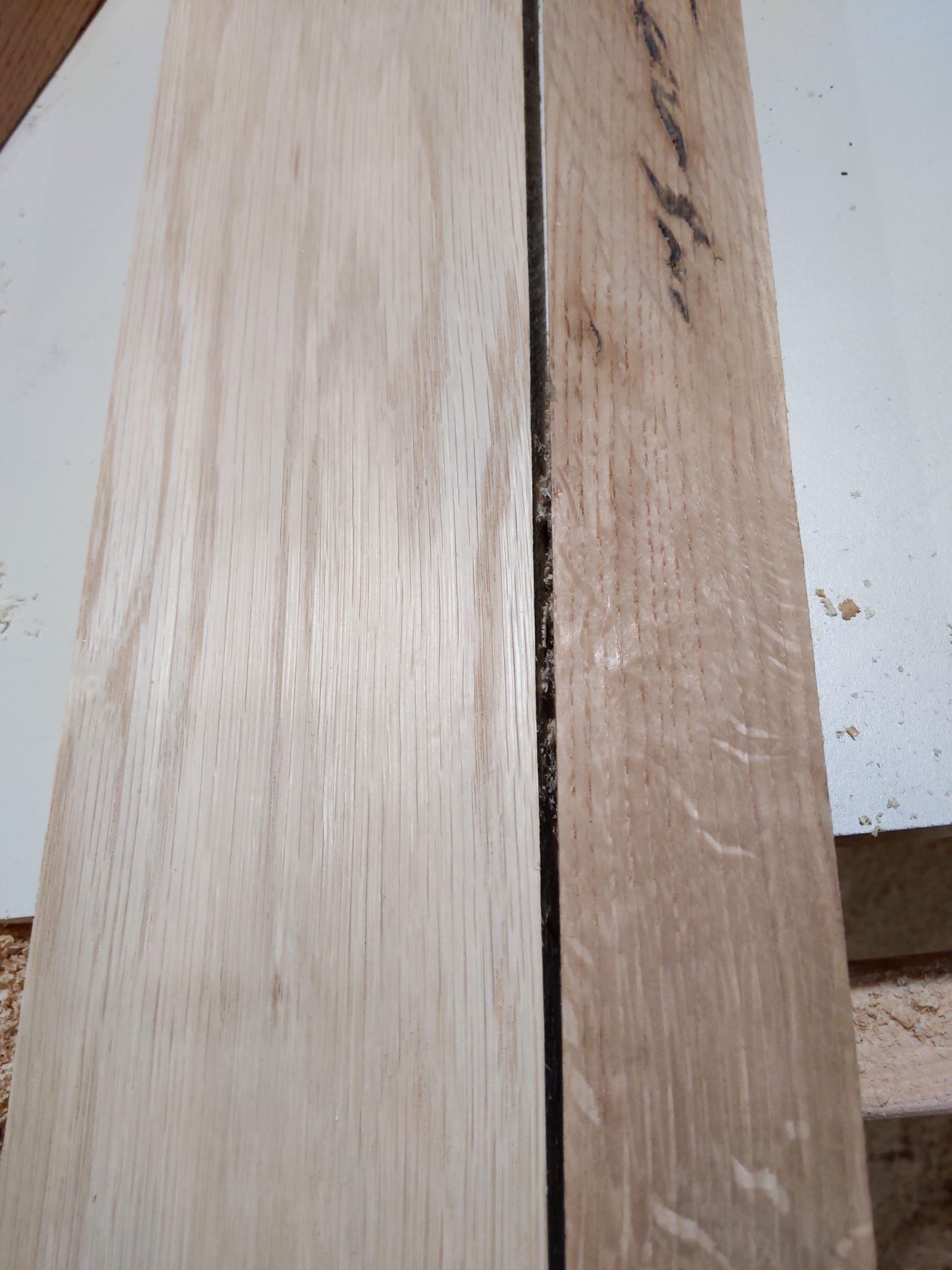 I bought white oak from two different sawmills, one in Philadelphia (probably sourced locally) and one 50 miles far in rural Pennsylvania. The former was air dried and stickered for at least 4 years, the latter kiln dried – so I was told. The two look quite different. They both look like oak to me, but the hue and smell are quite distinct. The one lighter in color is the kiln-dried one. Obviously one is quarter sawn and the other flat sawn, and I can’t see the characteristic white oak flecks in the flat sawn one. Also, the lighter one… Read more »