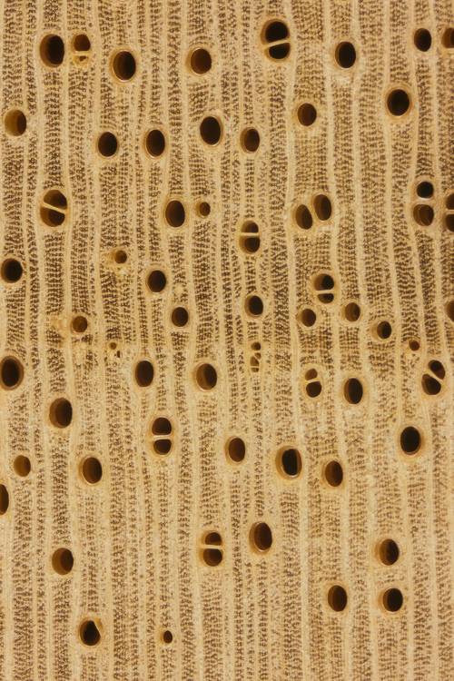 Porosity: diffuse porous; growth rings usually visible due to change in color of wood fibers and/or marginal parenchyma (occasionally present)