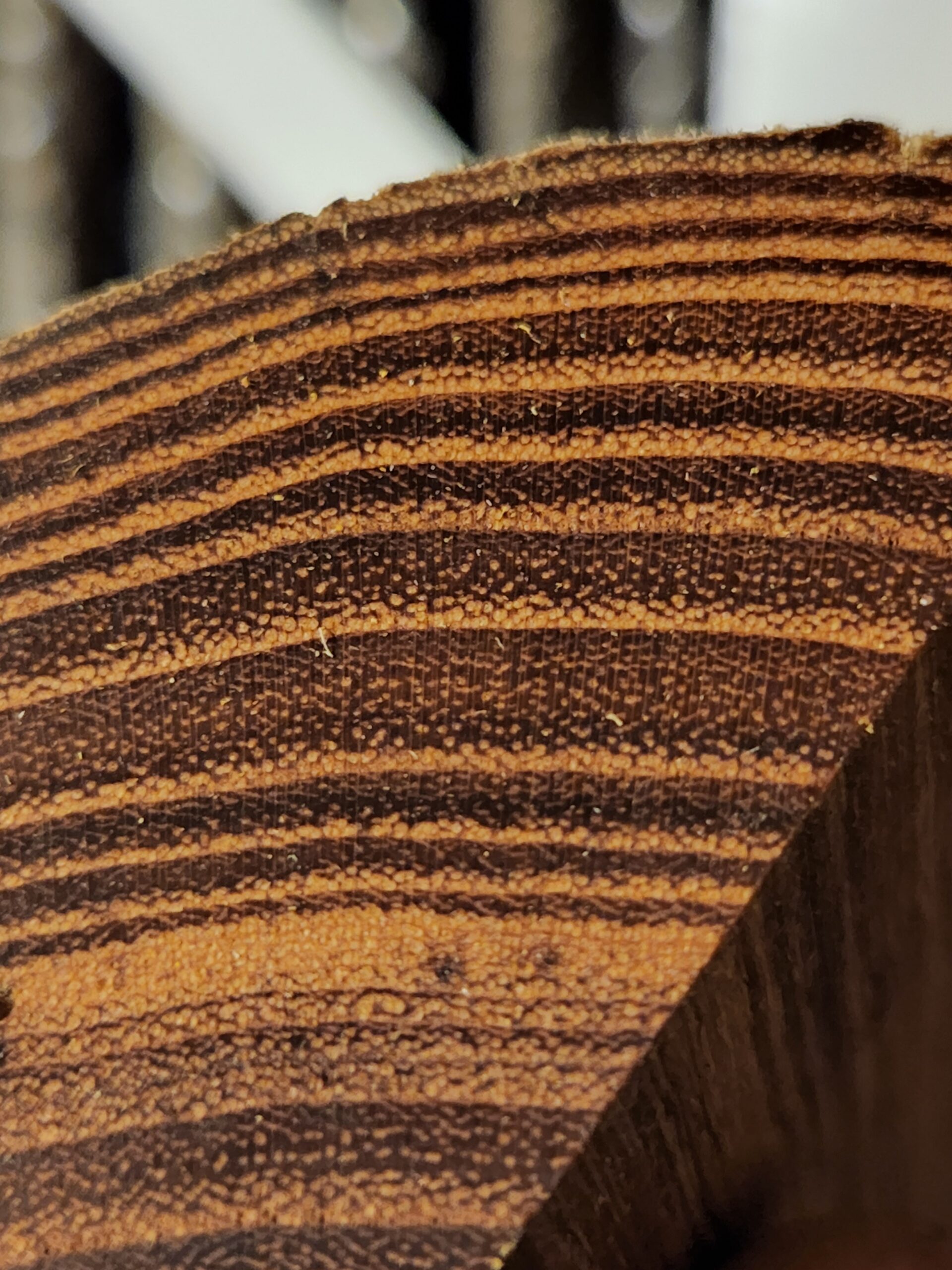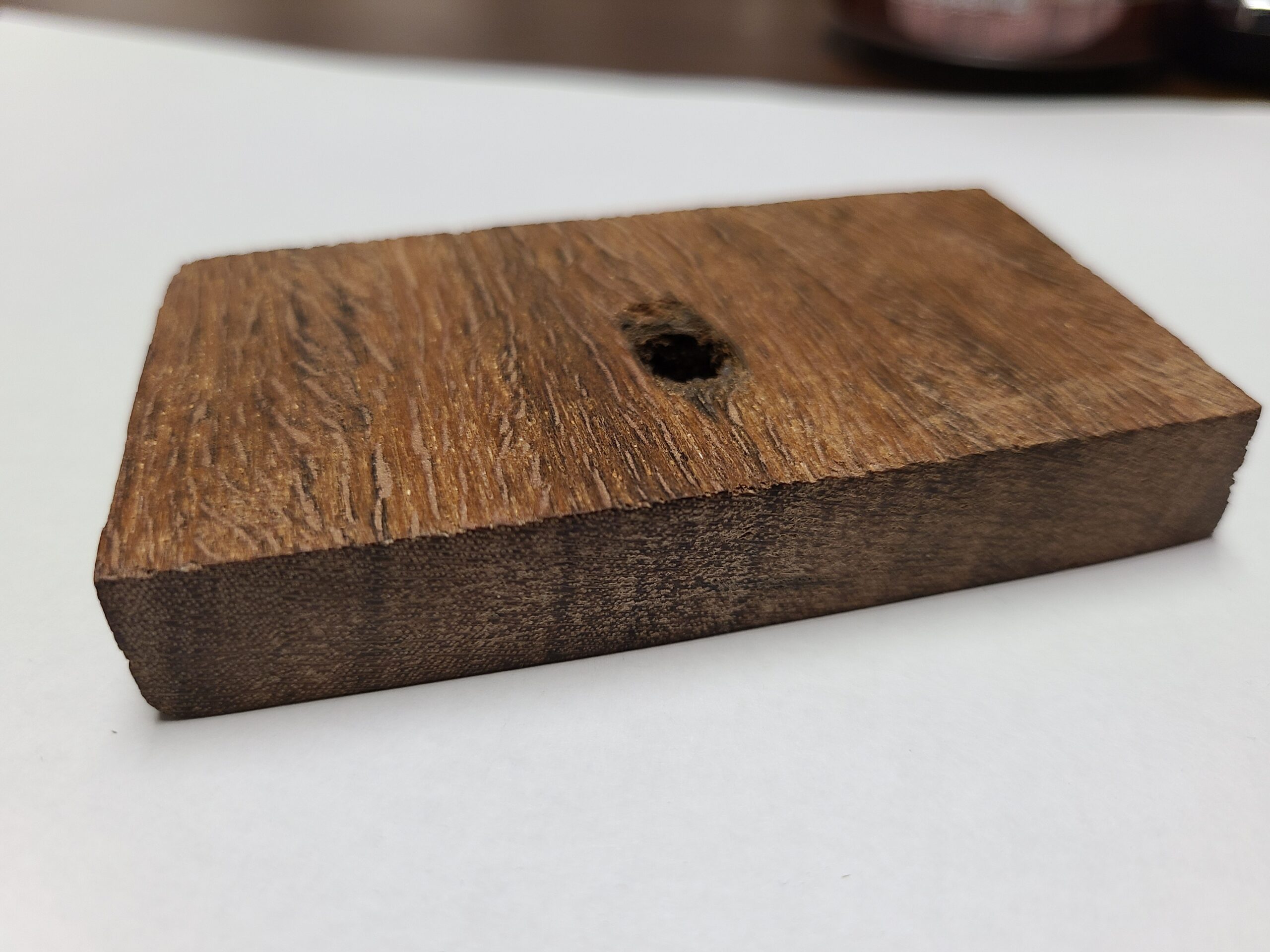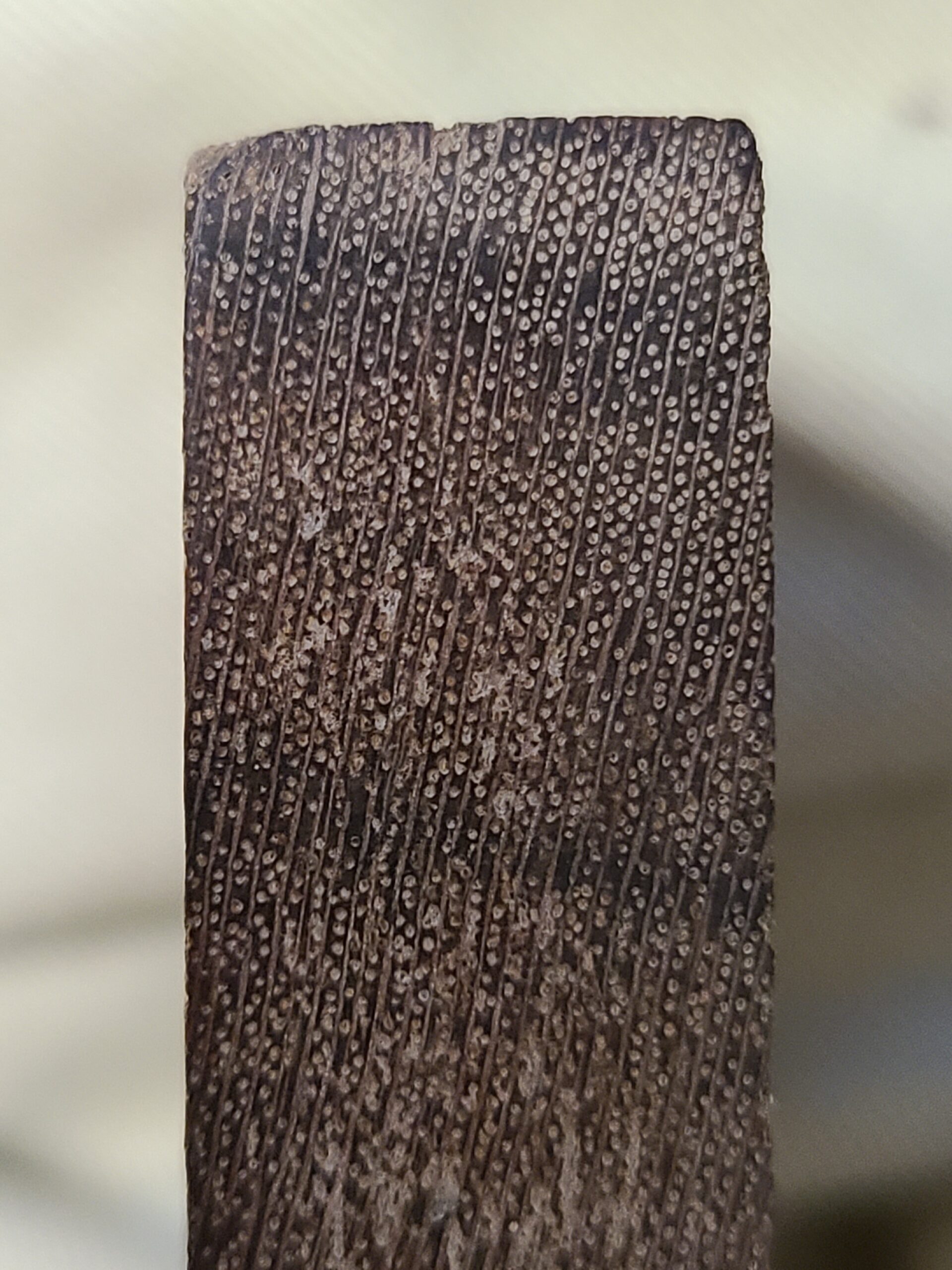 Surprising to hear from Eric that sanding is actually effective. I did not try sanding while preparing one specimen for identification, assuming that it would not work. What did work, after verifying that my plane irons were sharp and still getting lackluster results, was using a sharp chisel. Bevel-up of course, sometimes having to lift a few degrees to get it to actually bite.