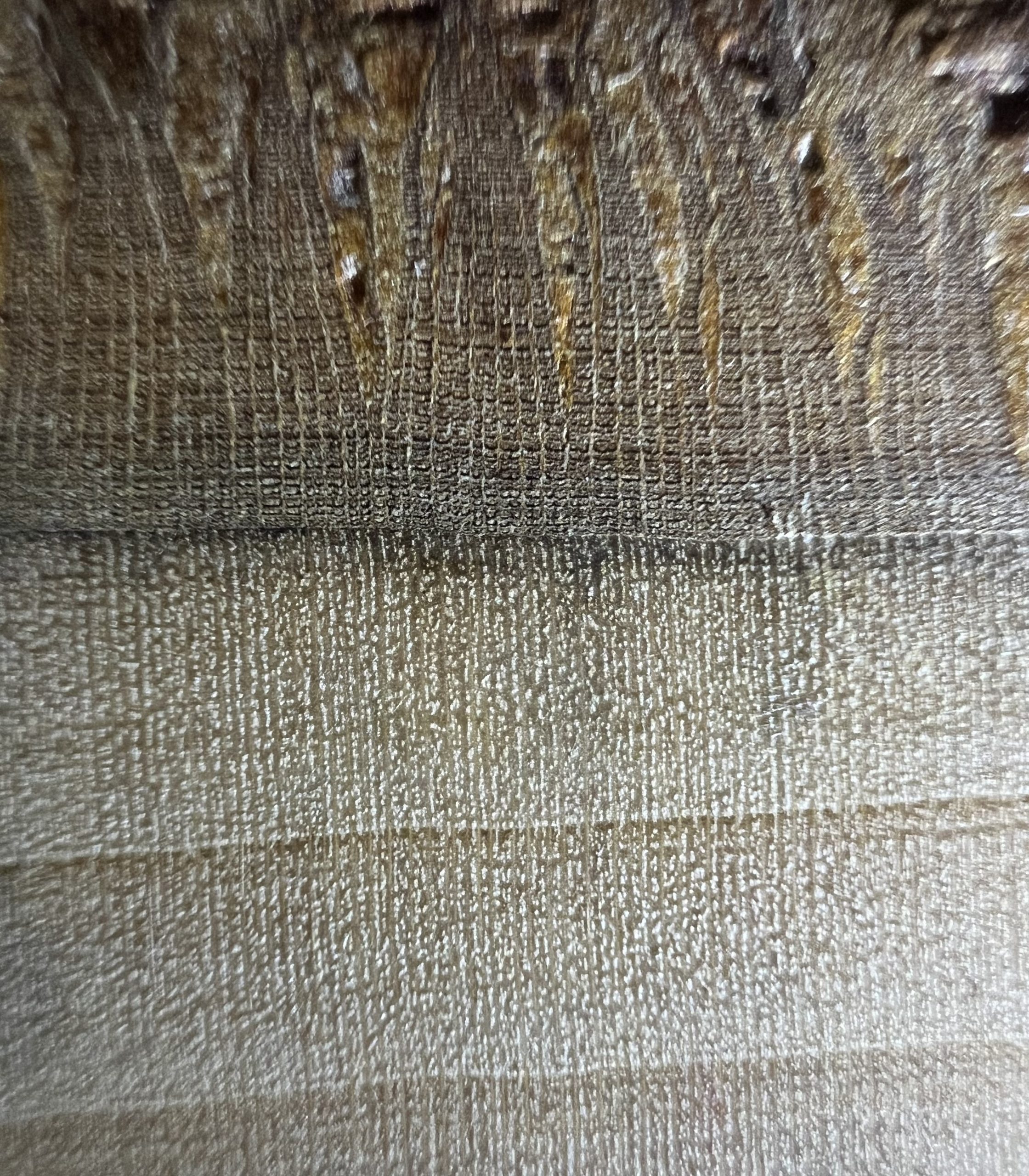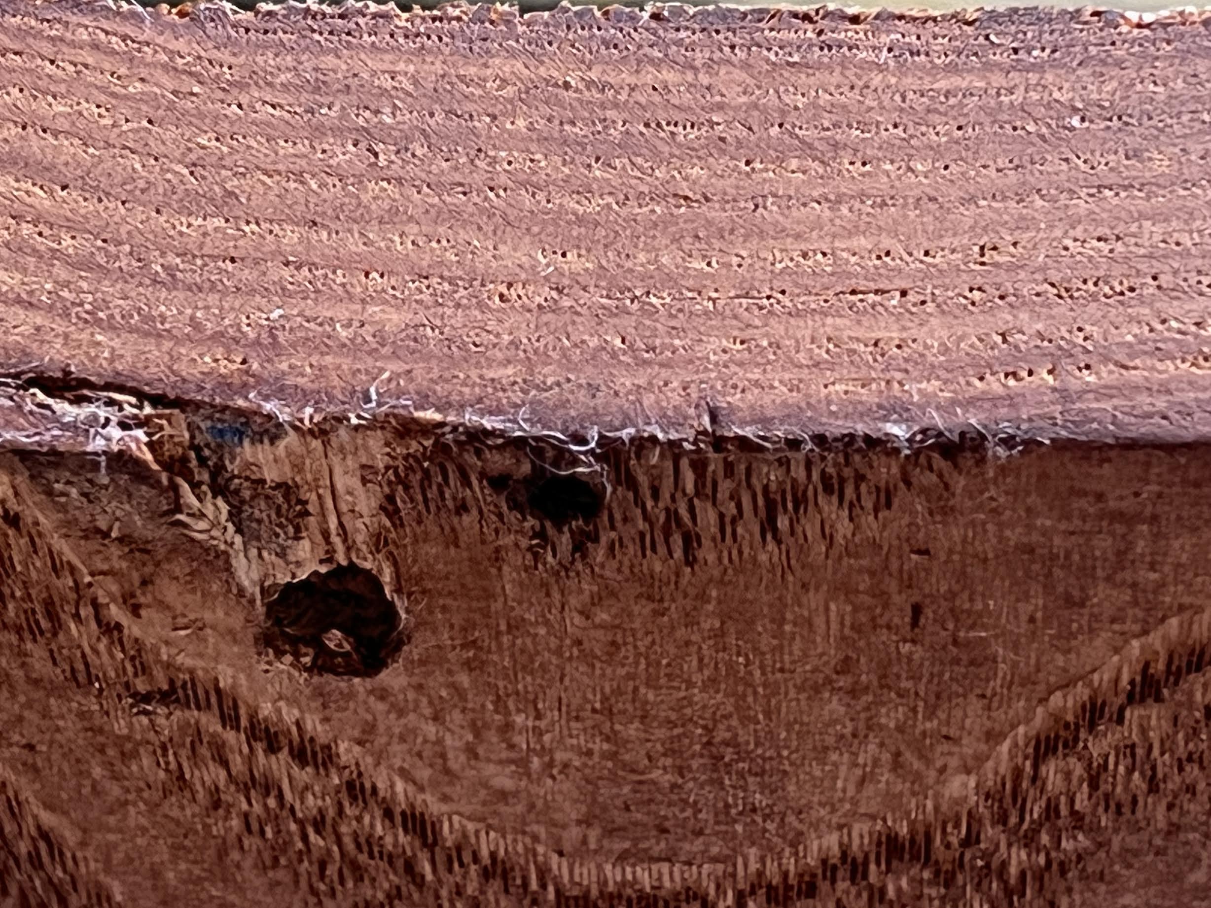 My pics got mixed up, that’s actually the upper-right of the plank, I.e. the 2 boards, etc. on the right. Hopefully, you can still make out the delineation of boards, ring boundaries, and pores. Thanks.