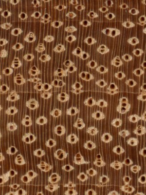 In temperate zones, it’s not unusual for hardwood pores to correspond to the annual growing season, with larger pores forming a band or ring along the earlywood zone. This category of porosity is called ring-porous.