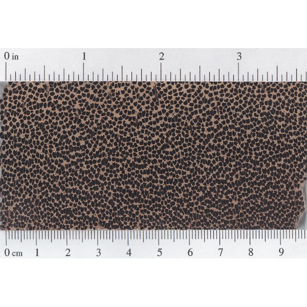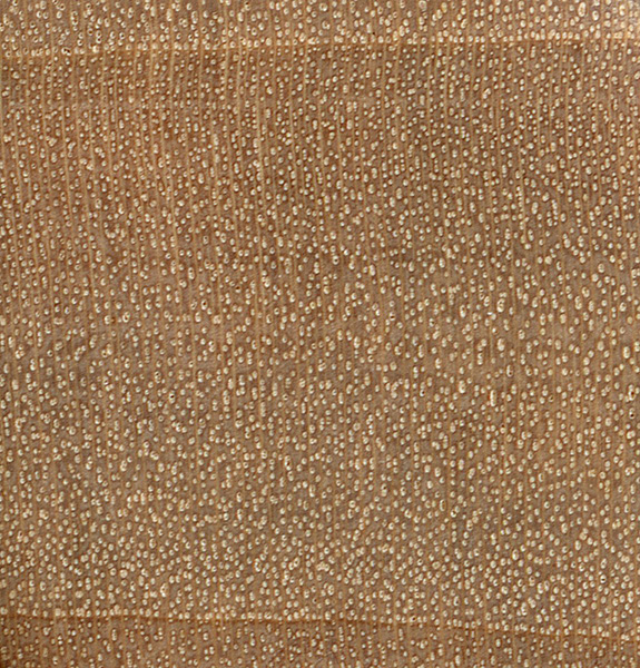The second category—common in many tropical species—occurs when the pores are distributed evenly throughout the wood. (Growth rings may still be discernible through other cell types, such as parenchyma bands, or a change of color in the wood fibers, but the largest elements—the pores—will be spread out and diffused throughout the wood.) This category of porosity is called diffuse-porous.