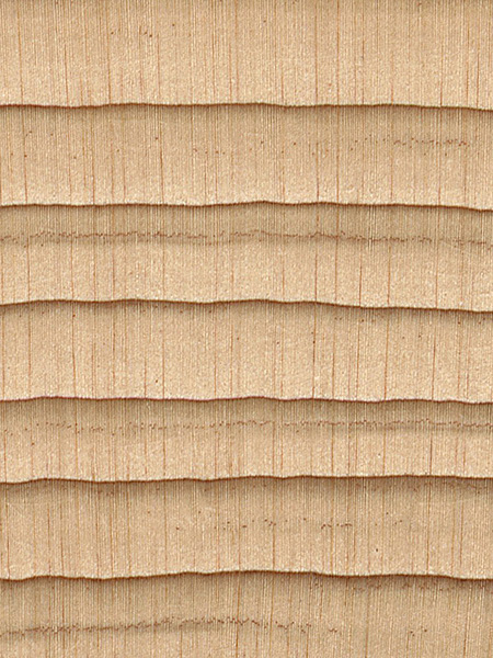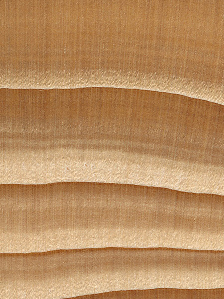 In conifers, grain contrast is basically a description of the contrast of color between the earlywood and latewood. If the color of the wood is somewhat monotone and uninterrupted between growth ring zones, it has low grain contrast. If the color of the wood has a striped appearance with high contrast between the earlywood and latewood, it has high grain contrast. Much like earlywood to latewood transitions, grain contrast is a somewhat subjective measure—though grain contrast tends to be an easier characteristic to gauge, and can be observed from the face grain as well as the endgrain. Grain contrast can be described as being very high, very low, or anywhere in between.First is a sample of western larch (Larix occidentalis) that has high grain contrast. Next is eastern white pine (Pinus strobus), which has a much lower grain contrast. On the facegrain surface of the wood, eastern white pine has a very uniform and monotone appearance, with grain lines that can hardly be seen.