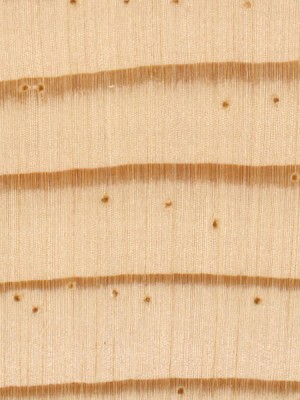 The earlywood of a tree consists of faster-growing material, while the latewood is comprised of denser, slower-growing material. In softwoods, this translates into larger diameter tracheids in the earlywood, and smaller diameter tracheids in the latewood. In addition to simply noting the overall average size of the tracheids, it can also be helpful to note the rate of transition from the earlywood to the latewood. This transition can be described as being either very gradual, or very abrupt, or somewhere in between, such as moderately abrupt. Although this visual description is somewhat subjective, such observations can help give clues and point an otherwise ambiguous identification into one direction or another.First is southern yellow pine (Pinus spp.), which has a rather abrupt transition from earlywood to latewood. Next is sugar pine (Pinus lambertiana), which has a much more gradual transition in its tracheid sizes.