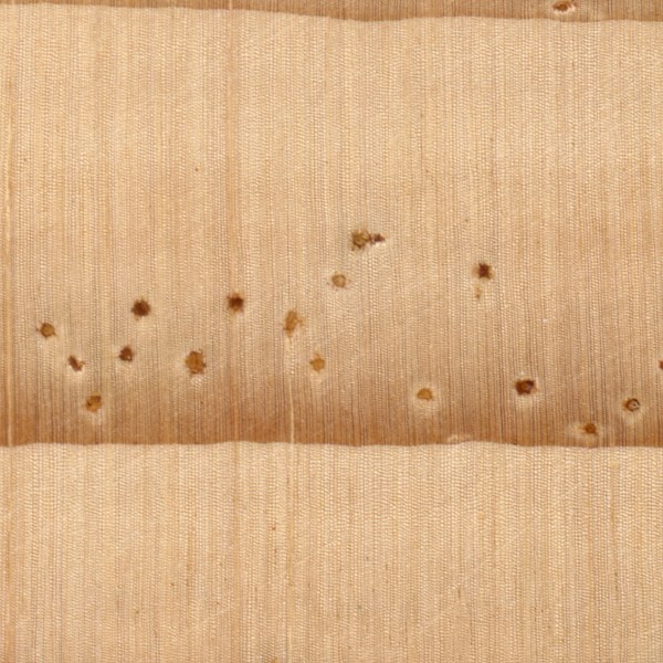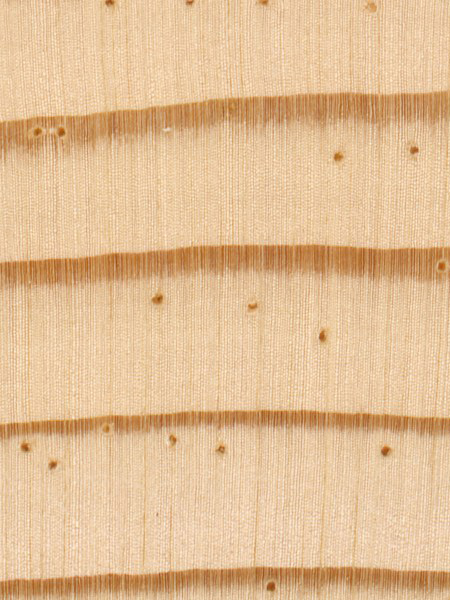 Within a conifer’s trunk, the majority of the wood is comprised of long, thin cells called tracheids. In addition to giving the tree most of its strength, tracheids also double as “pores” in a sense—since conifers lack true pores, they rely on tracheids for sap conduction.Tracheids are arranged in orderly, neat rows within the trunk, and are longitudinal (they run lengthwise with the trunk). Tracheids can vary in diameter depending on the species, and because they account for over 90% of the cells, their diameter greatly influences the overall texture and feel of the wood—the larger the diameter, the coarser the texture.