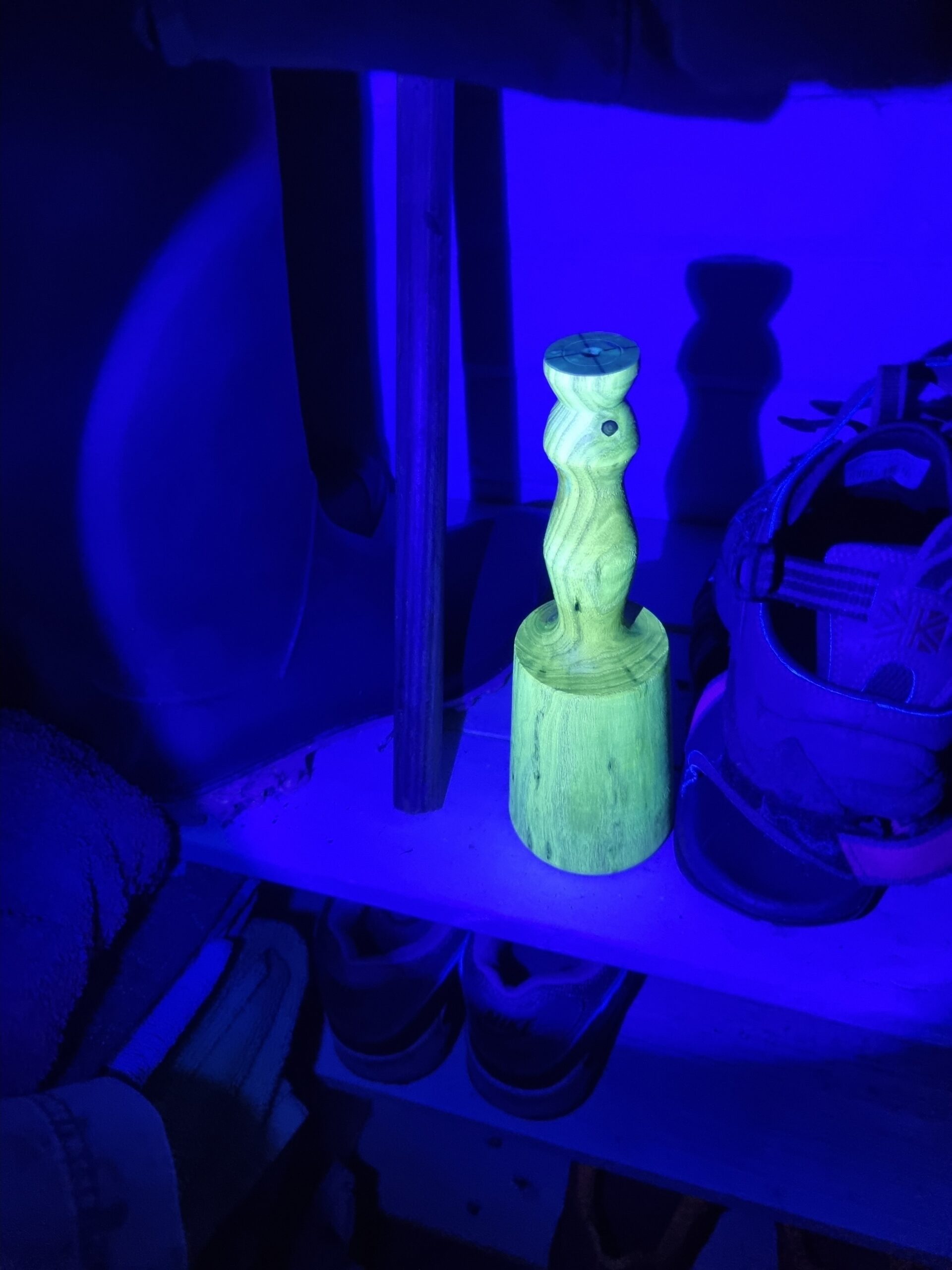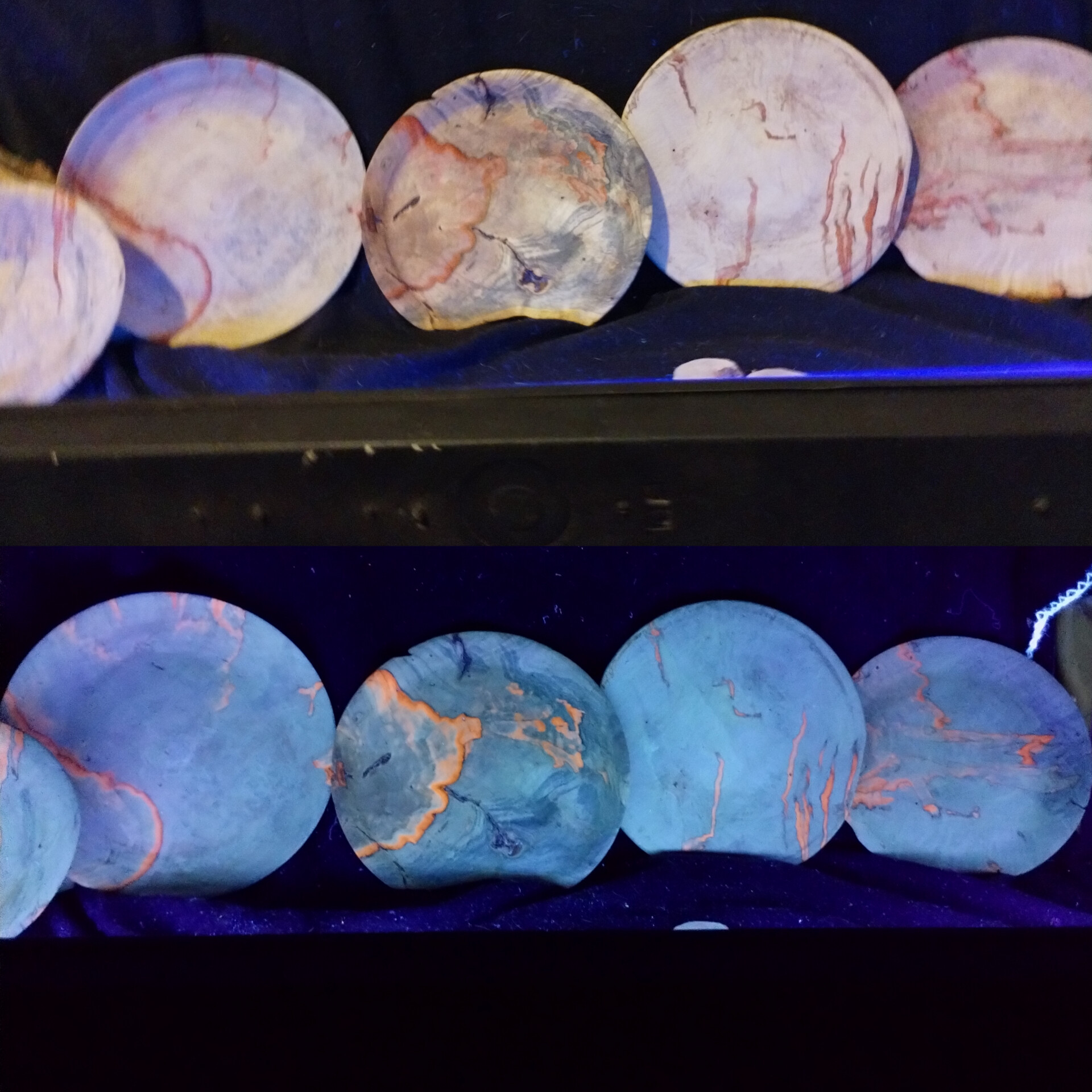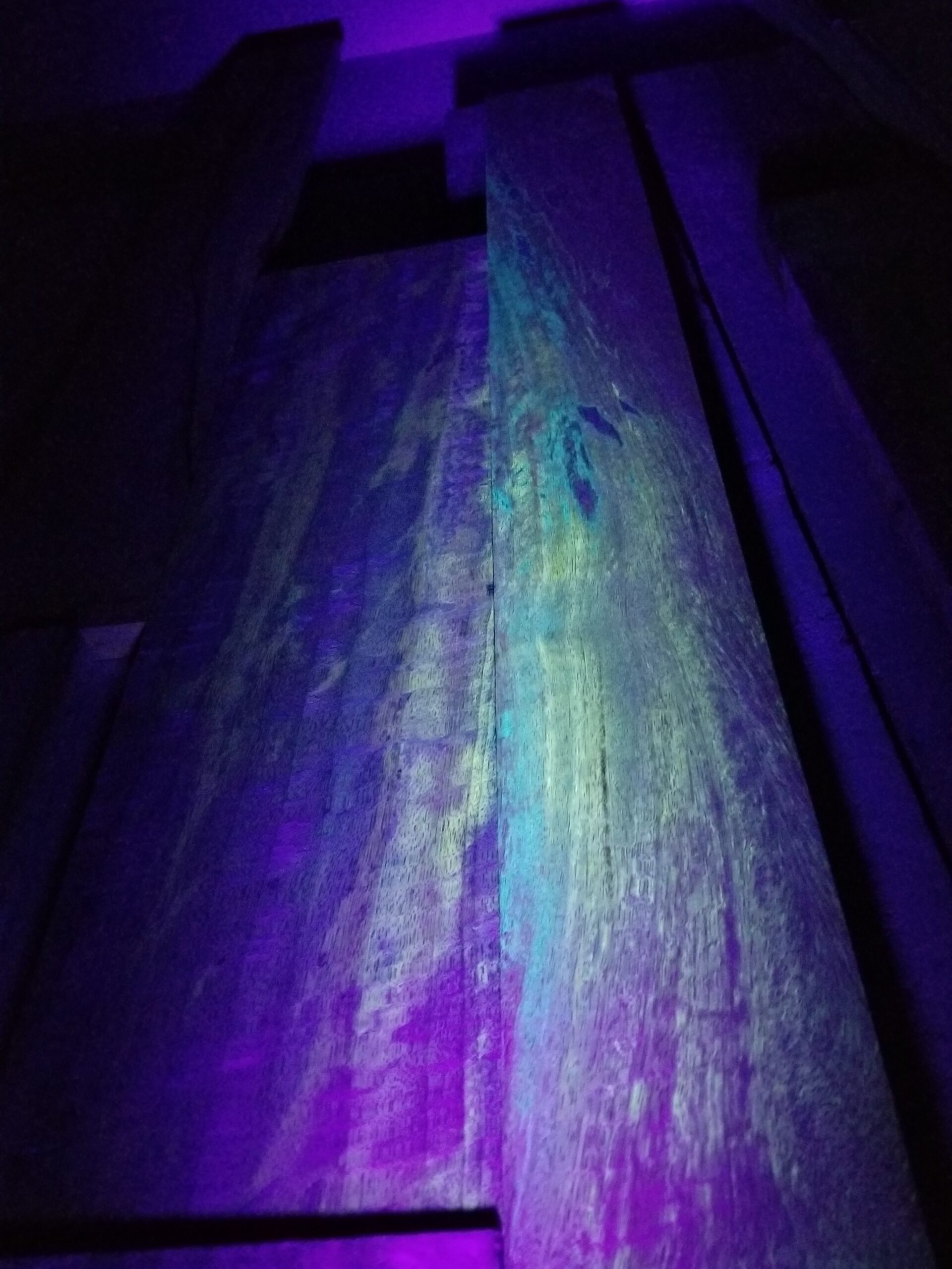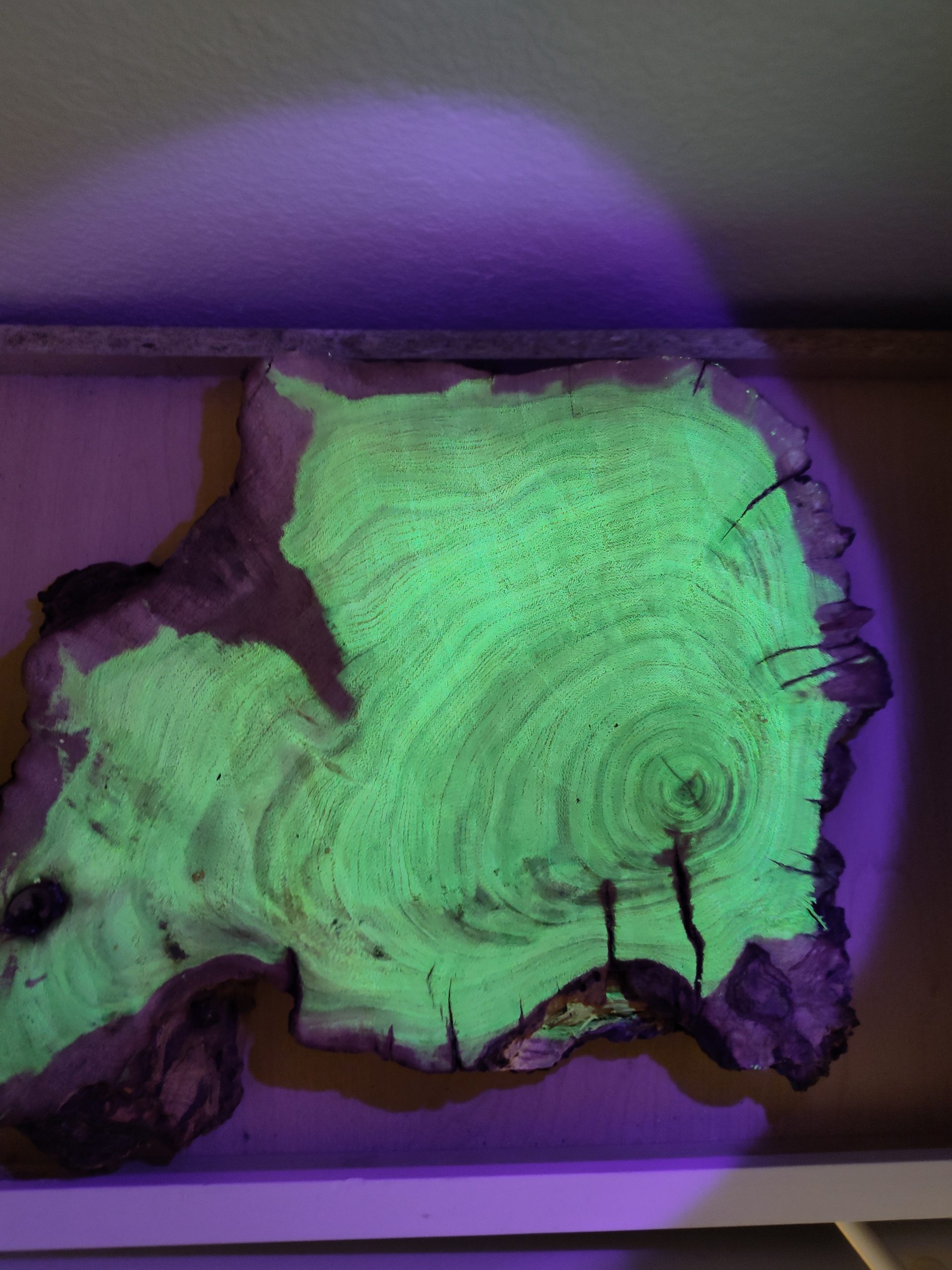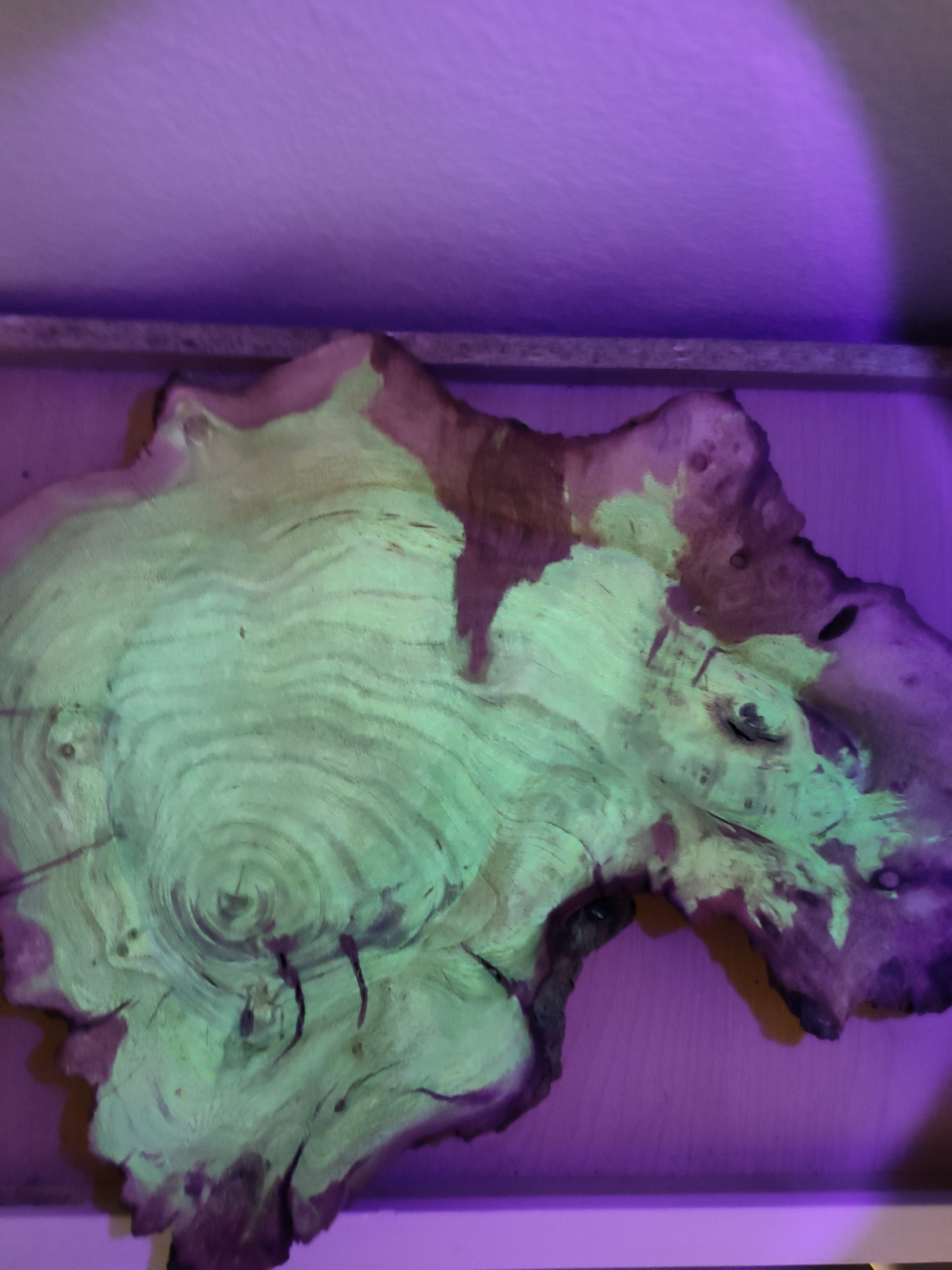What if just the knots/burls of the wood glow. Used a black light on the decking of the wood in my front porch and just the knots/burls glow. Has me reallly curious.