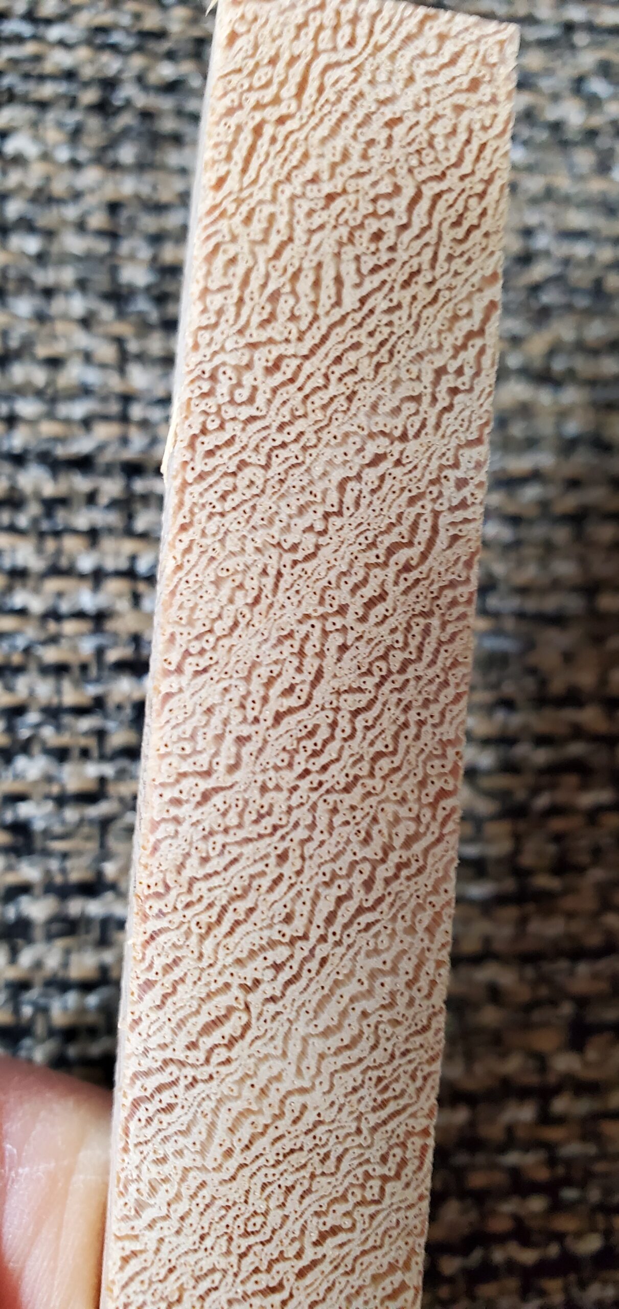 | Pink Ivory | medium streaked pink/red in certain portions of heartwood |