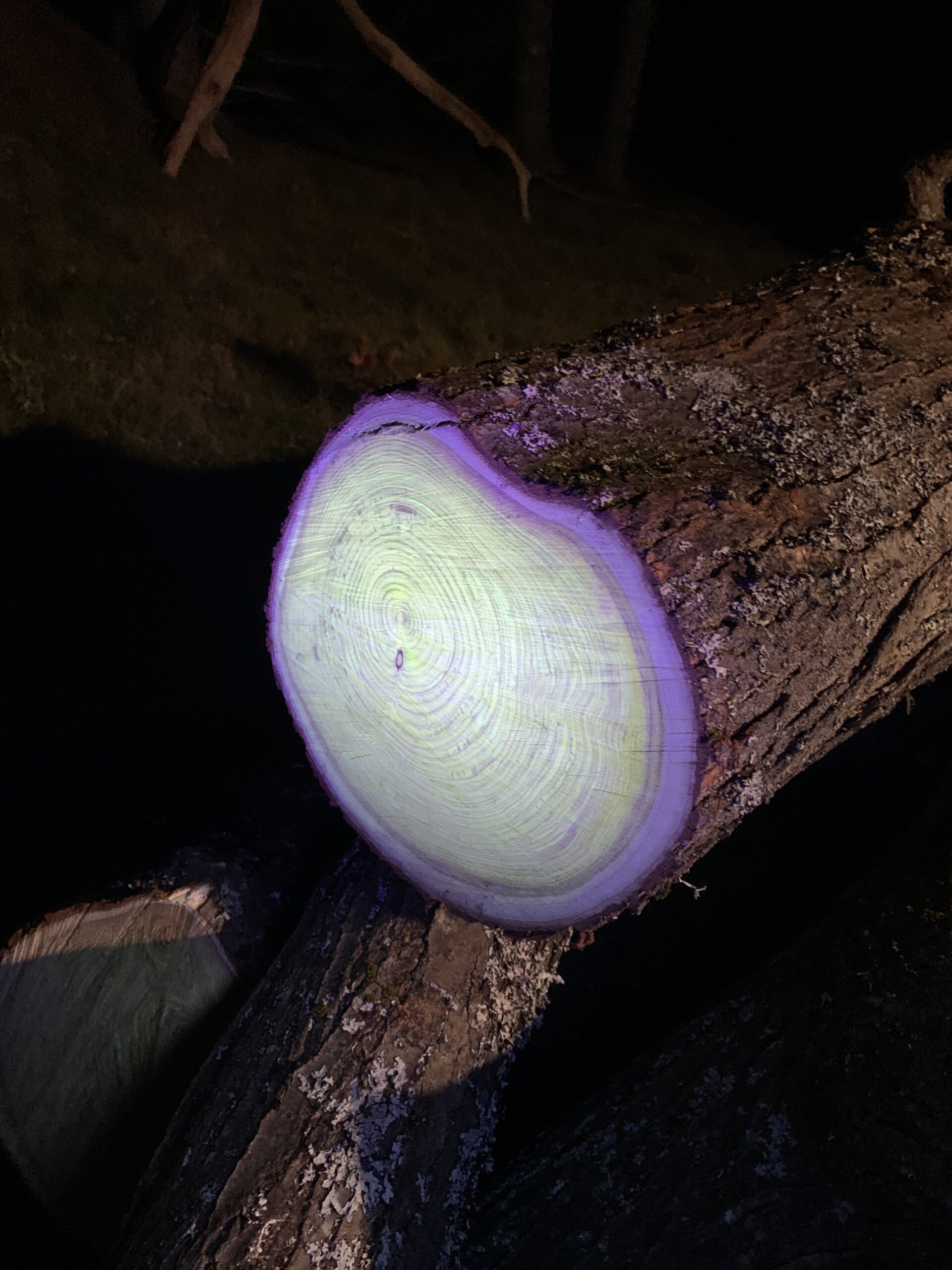 Interesting how the sapwood doesn’t fluoresce in this section of a small branch from Black Locust.