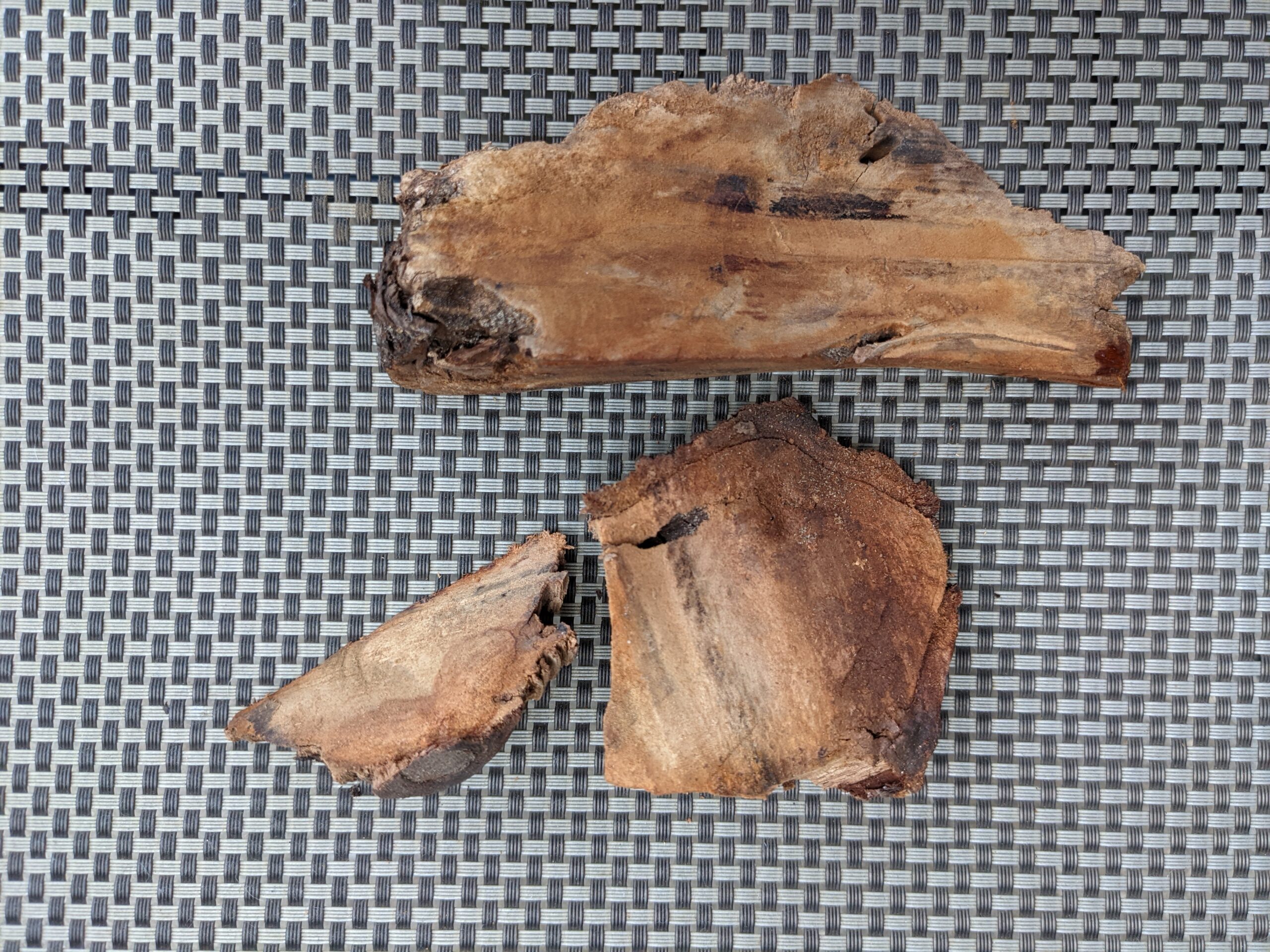 These slabs are from the very hardwood trunk which we didn’t encounter until we started digging to make a planting area. We hacked at it and ultimately used a reciprocal saw.