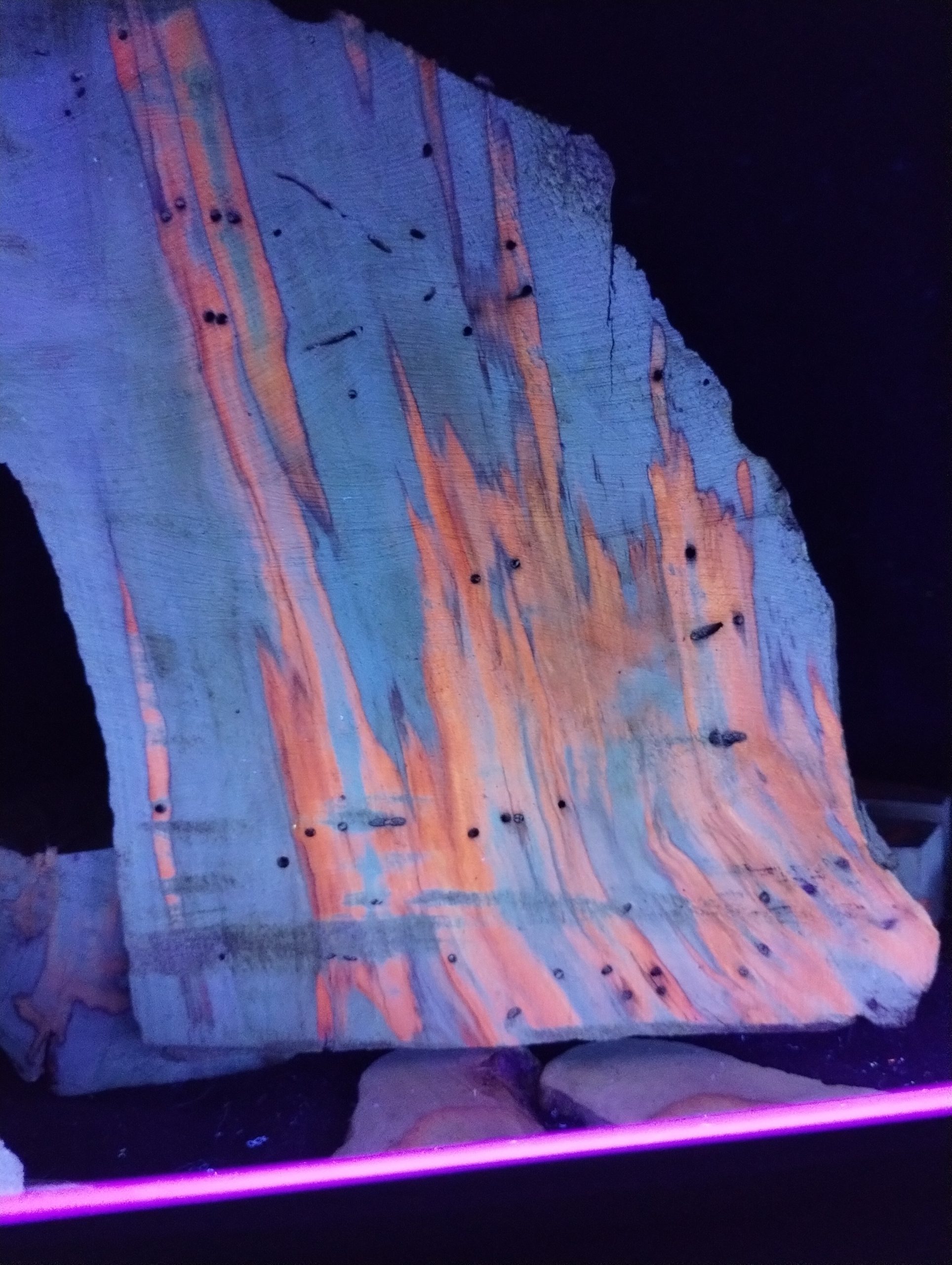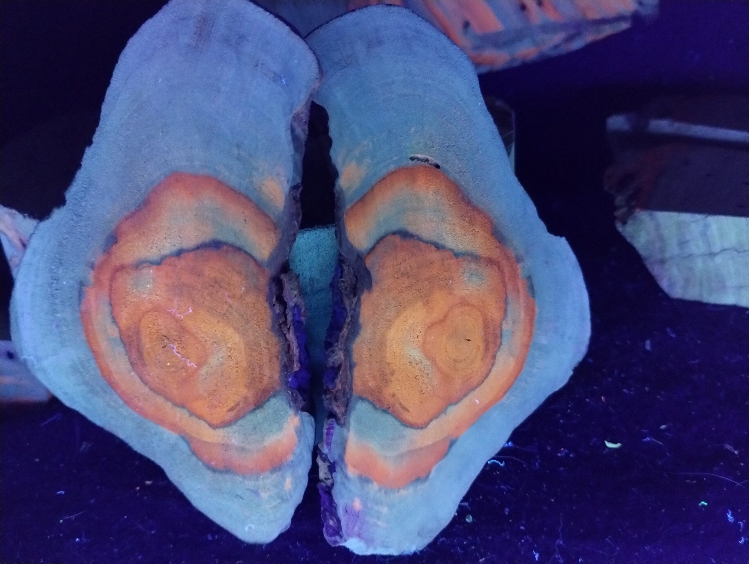 ps. the right/ fluorescent one is the special wood whose name we are curious about.