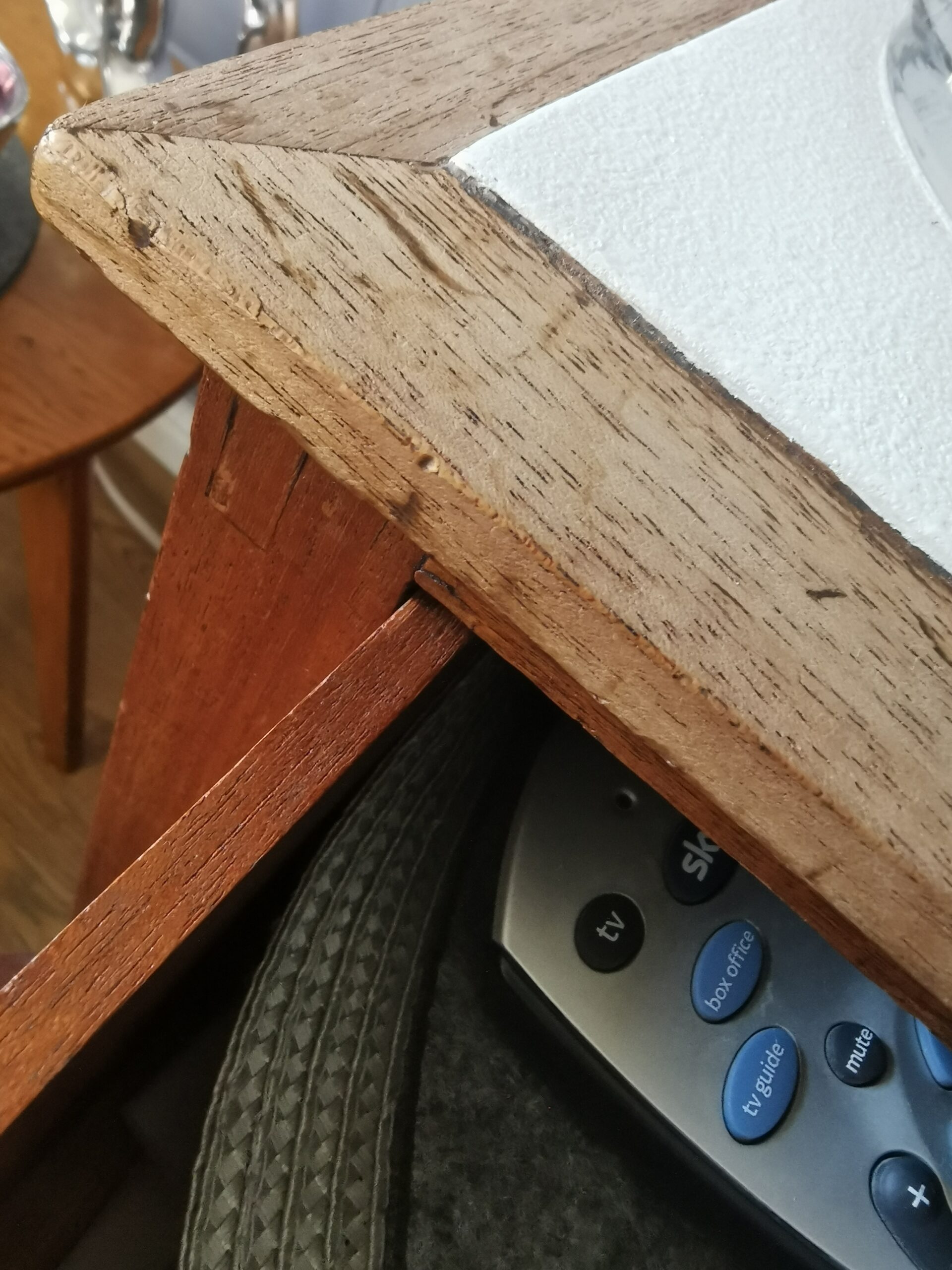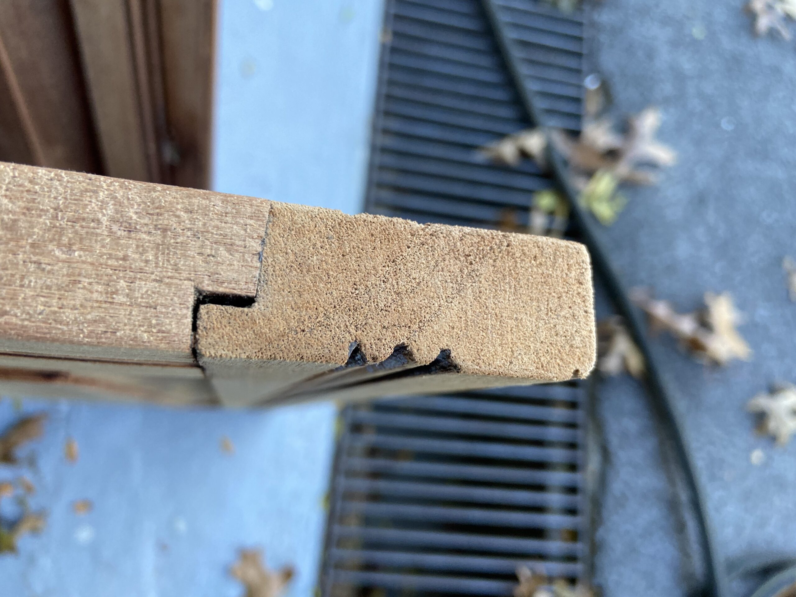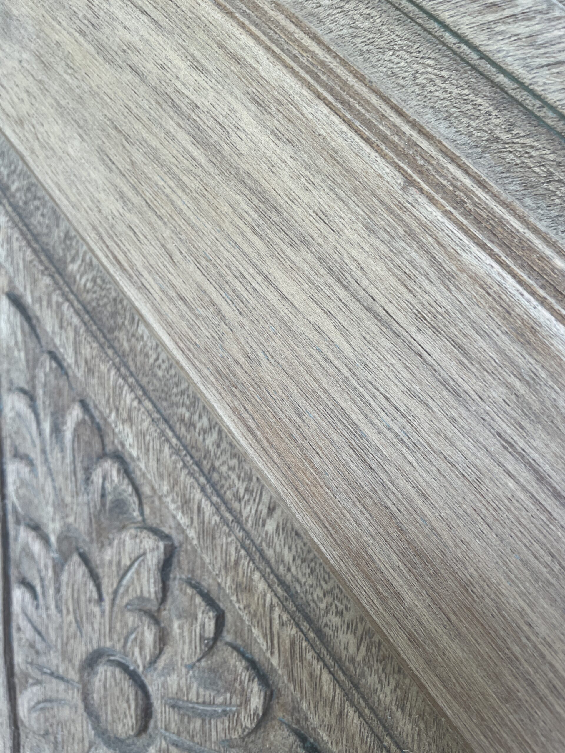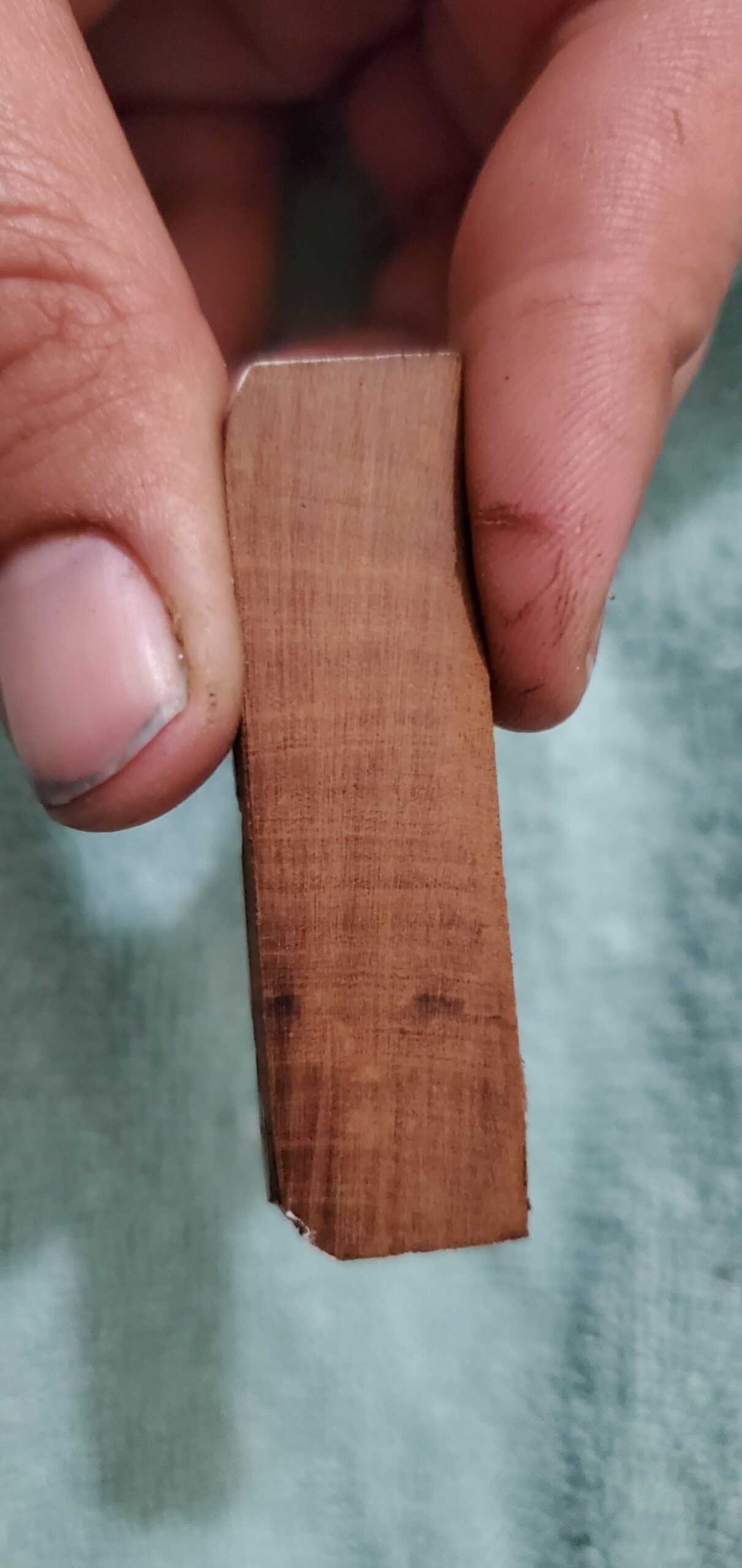 Es lo mas “ampliada” que puedo sacar una foto. Es de uno de los lados del marco trasero (cada tablilla mide solo 20mm x 4 mm de espesor) y aun mantiene sus condiciones estructurales. El color se ve algo claro por la intensidad de la luz. El color natural es mas oscuro como se puede ver en las anteriores fotos. Te agradezco mucho tu opinion. Abrazo!