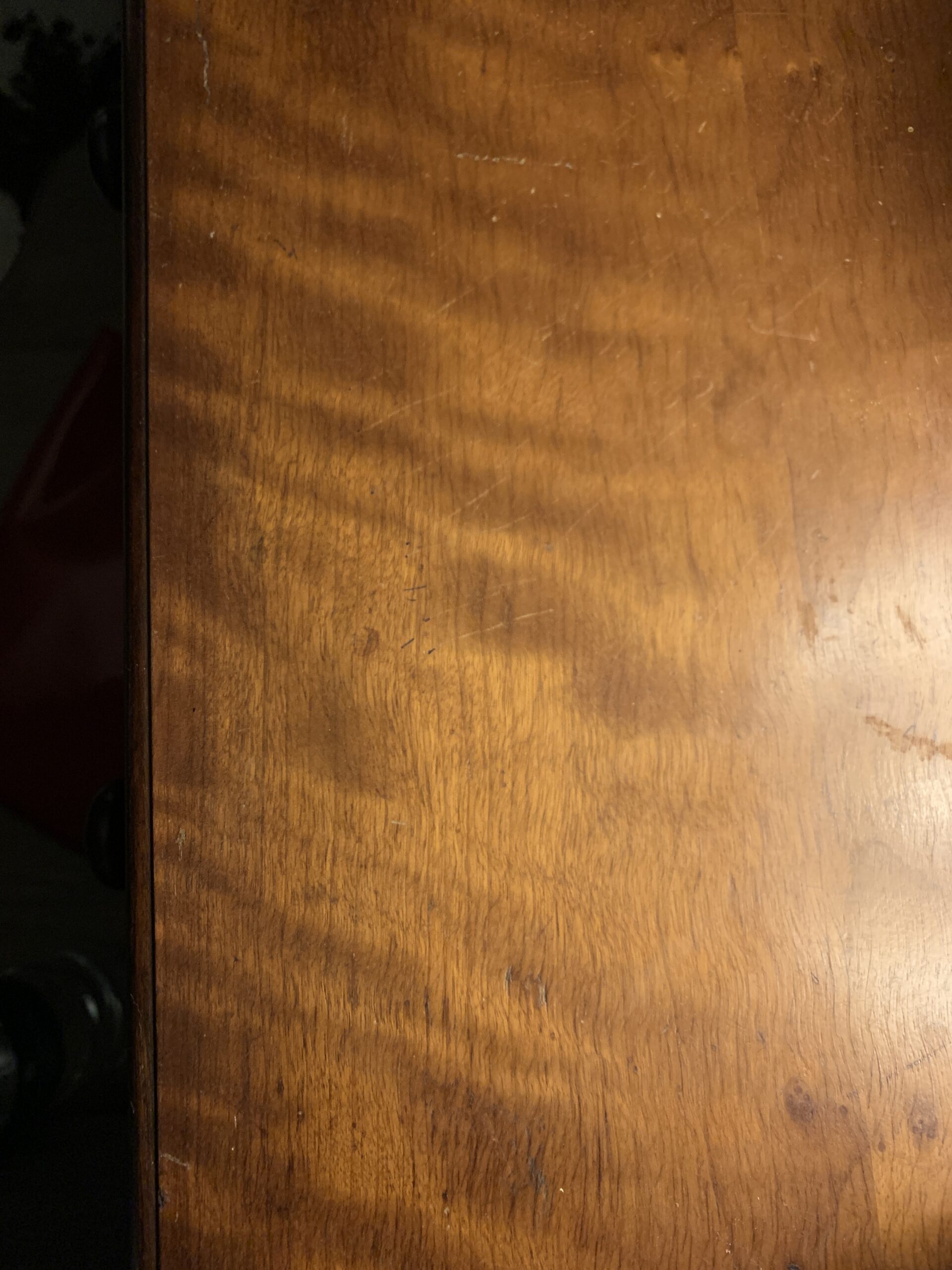 Hi Eric, I hope you’re well and that you can help me: I bought a second hand desk a few months ago (it was advertised as walnut but when I stripped it I found that (most of) it looks more like mahogany than walnut. Regardless, it’s beautiful wood and I’d like for it to maintain this colour. Would you know of any products that will allow me to maintain the colour while protecting the wood? I absolutely love it like this (also attached a close up of the other random, softer wood in case you have any advice for it)