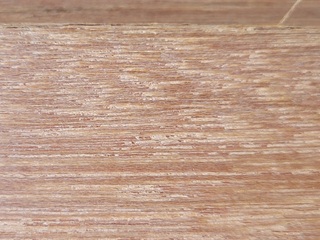 In finished pieces: Another trick to tell Swieteniaspecies from Khaya species, especially if you do not have access to the endgrain, is to look for ripple marks on a flatsawn surface of the wood. Basically, on many pieces of Swietenia-genus mahogany, the rays (small reddish brown slits) will collectively be arranged in neat little rows (called storied rays), which appear as minute little ripple marks that are seen clearest on flatsawn portions (see accompanying scan—you will more than likely have to view the full-size image to make out these small details). These ripple marks are sometimes (but not always) seen in Swietenia species (as well as Sapele—see further down this article), but almost never in the African Khaya species. An absence of ripple marks is ambiguous (could be either genera), while the presence of ripple marks strongly points to a Swietenia species.