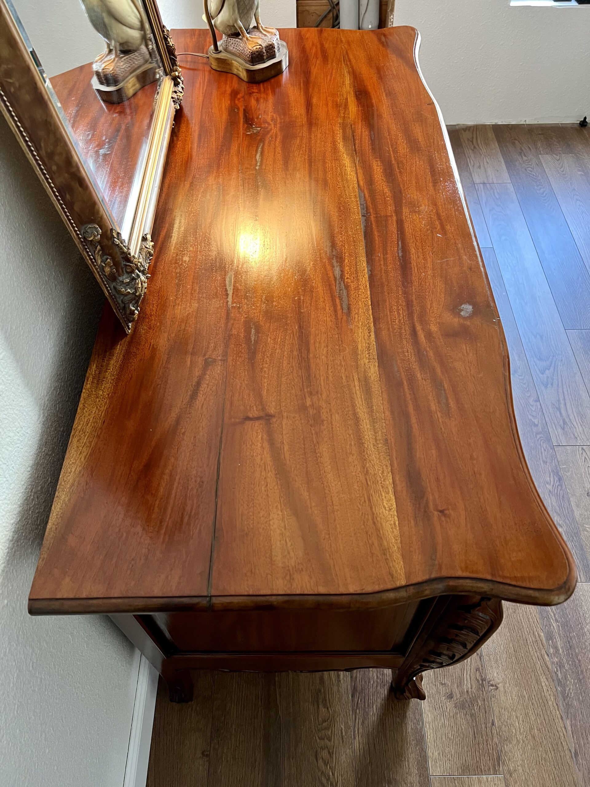 Hello Eric, great article, thank you- I just bought this gorgeous old dresser at a thrift store and would love to know what type of wood it is-I was thinking Mahogany but after reading your article I’m even more unsure. It was very dusty, (every single groove / indentation was caked with dirt) so I used some furniture oil. It is solid, no veneers- but it looks much different than your Mahogany identifier pictures, any ideas?