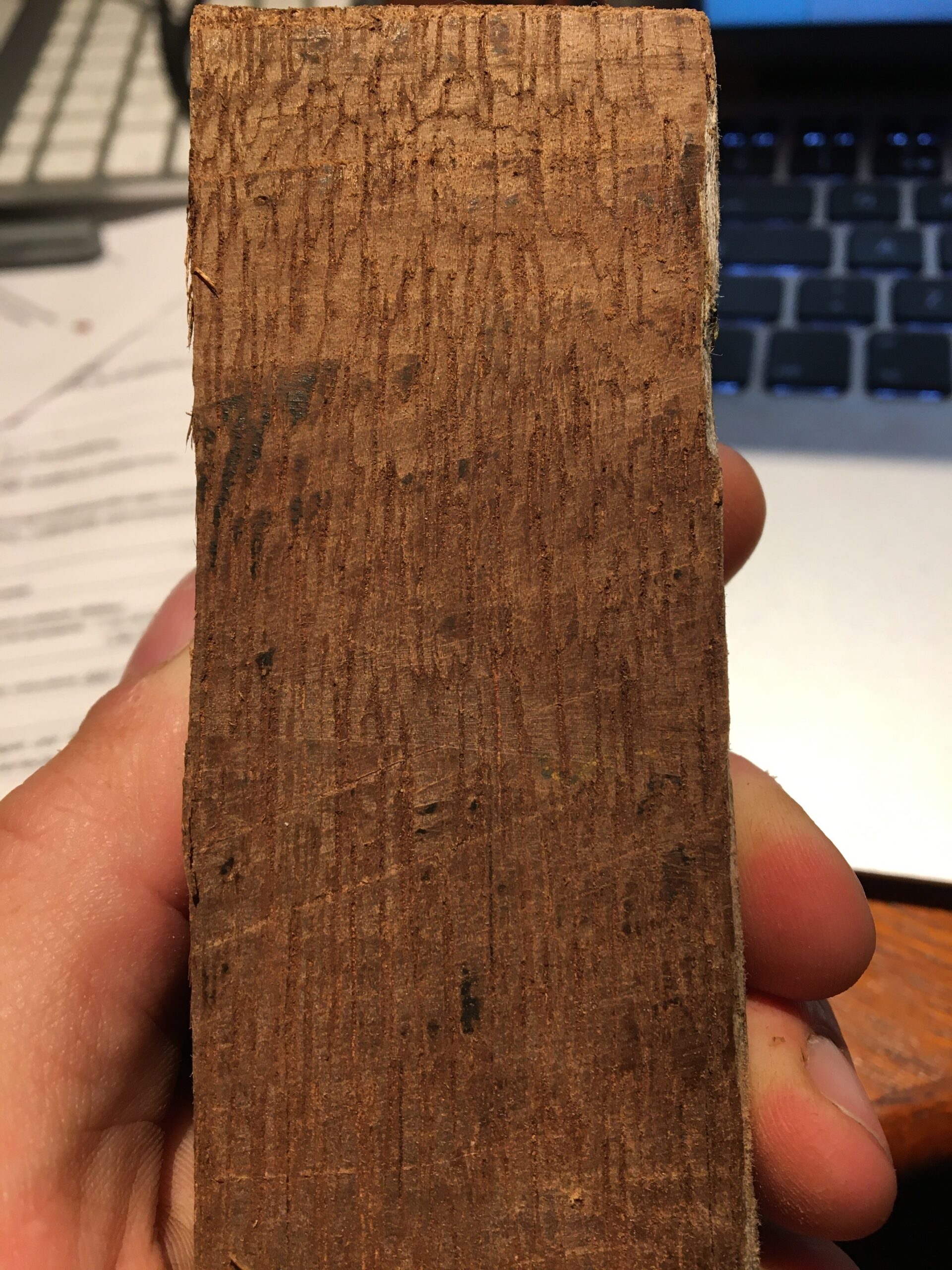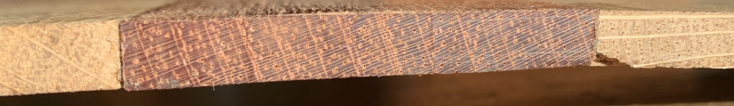 Thank you for maintaining this resource! I’ve spent the last several days pouring over it trying to ID this wood I pulled out of an old table that had been curbed for garbage collection. On the inside there’s a metal plate that says “XVI” and a sticker reading “#138,” and the hardware is significantly rusted, so I thought it could be an older, higher-end piece, which led me to look into mahogany. I’m just not sure yet. I’m reasonably sure it’s Meliaceae, at least. It definitely has the ripple marks that indicate it could be swietenia. The end grain is… Read more »