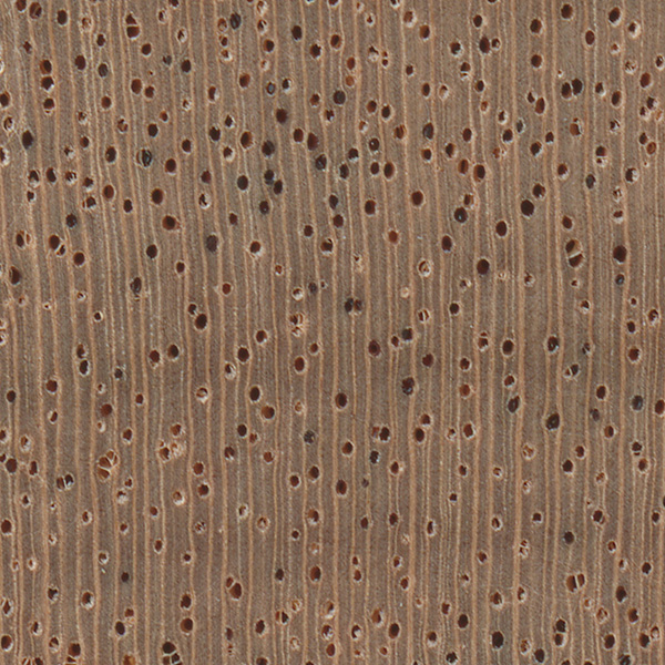 Identifying Sapele and Utile: These two species are both in the Entandrophragma genus and are very closely related. They may be separated from Swietenia and Khaya mahogany on the basis of their endgrain. Both Sapele and Utile have banded parenchyma (visible as horizontal lines in the accompanying scan) that occur consistently throughout the wood—not just at the annual growth boundaries. Additionally, the two woods tend to be heavier and darker than Honduran or African mahoganies, and both have a pleasing cedar-like scent when being worked. Sapele can usually be separated from Utile on the flatsawn surface by checking for storied rays. Sapele will have ripple marks (formed by the storied rays) evident on the flatsawn surface, while Utile lacks this feature. If the woods are quartersawn, Sapele has narrower, tighter, and more uniform ribbon stripes, while Utile’s are wider and more erratic.