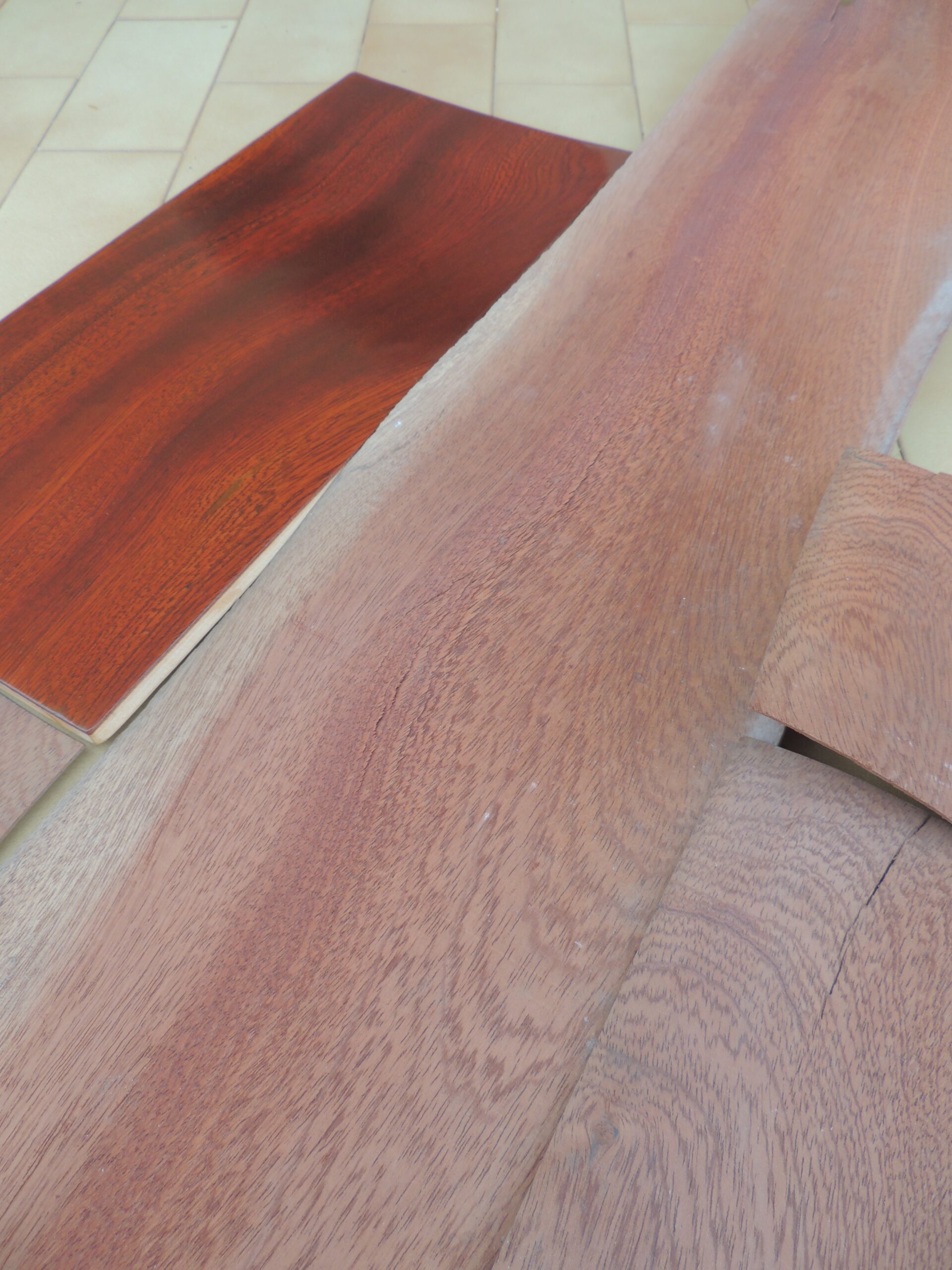 Thank you for the quick reply. One thing that puzzles me is, that on some areas the wood has been exposed by the sun for years. For what I have read sapele and bubinga gets darker in the sun. The picture I have attached, is where there have been a carpet on for years. You can clearly see the difference. The sun have lighten the left side.