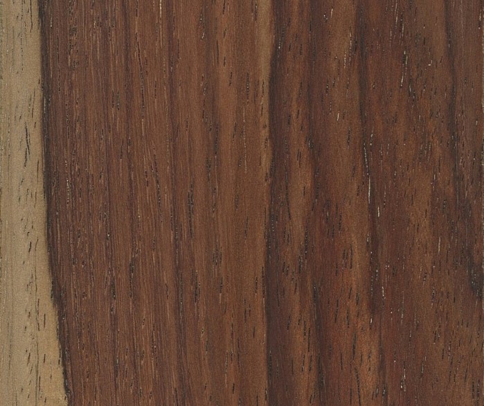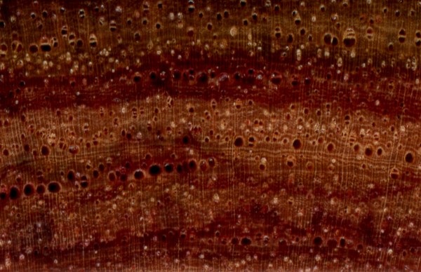 The transition from sapwood to heartwood is accompanied by the accumulation and buildup of various deposits and substances, commonly referred to as extractives. Most notably, these extractives are responsible for giving the heartwood its characteristic color: the jet-black color of Ebony (Diospyros spp.), the ruby-red of Bloodwood (Brosimum rubescens), or the chocolate-brown of Black Walnut (Juglans nigra)—all owe their vivid hues to their respective heartwood extractives. (Without extractives, the sapwood of nearly all species of wood is a pale color, usually ranging from white to a straw-yellow or grey color.)